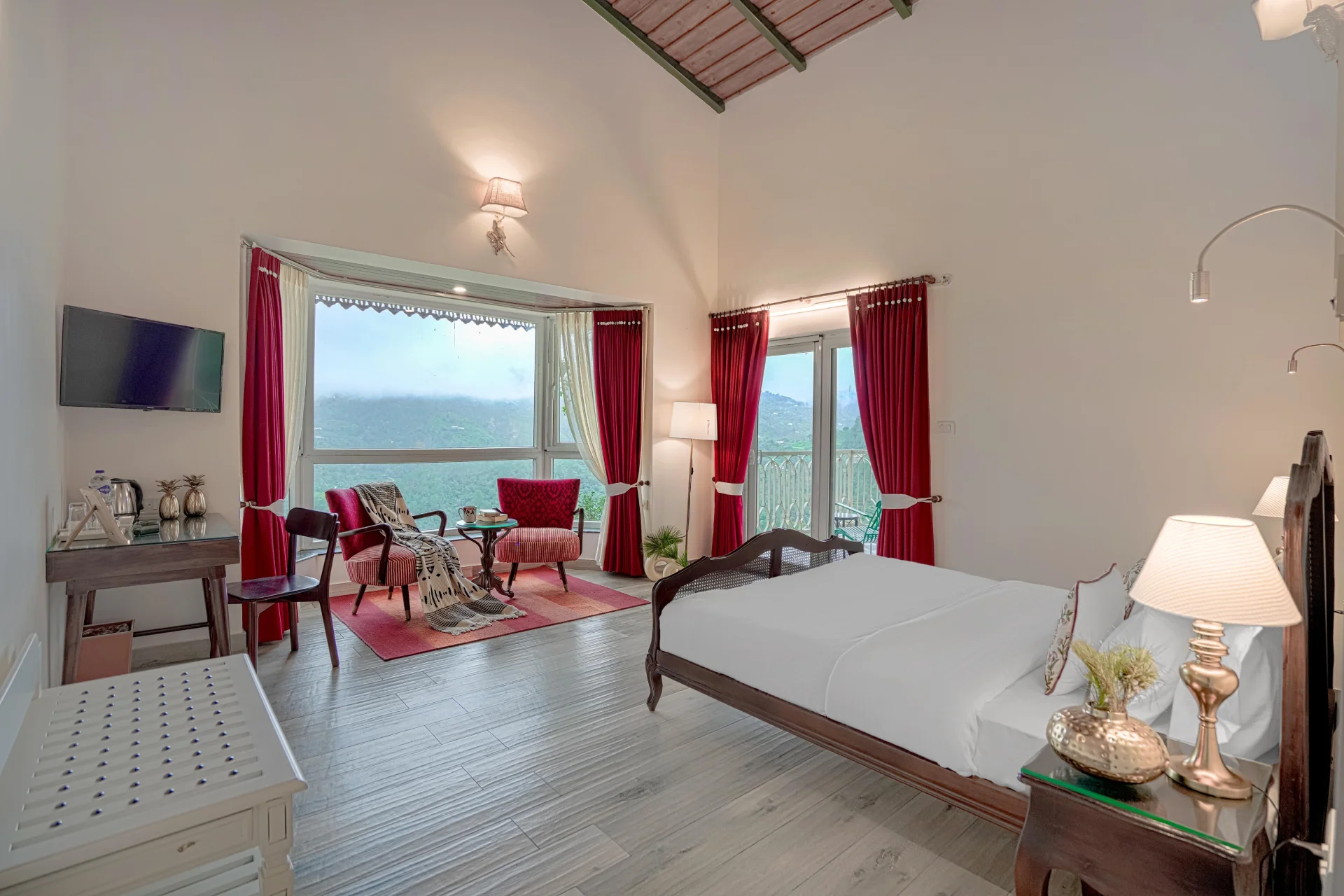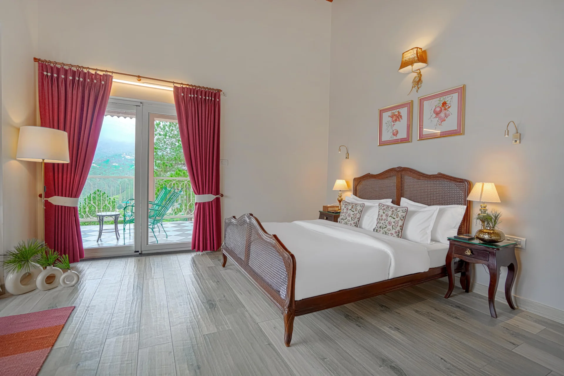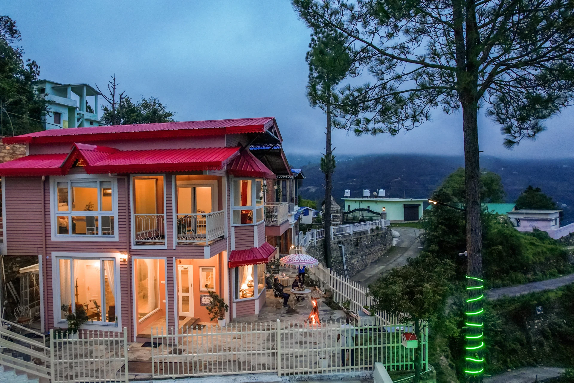 1 Bedroom Cottage In Mukteshwar VODUK88 Villa is a delightful one-bedroom getaway situated in the tranquil Himalayas of Mukteshwar. This inviting stone accommodation boasts warm-toned interiors, rose-pink roofing, and white-framed windows that harmoniously blend with the picturesque environment.