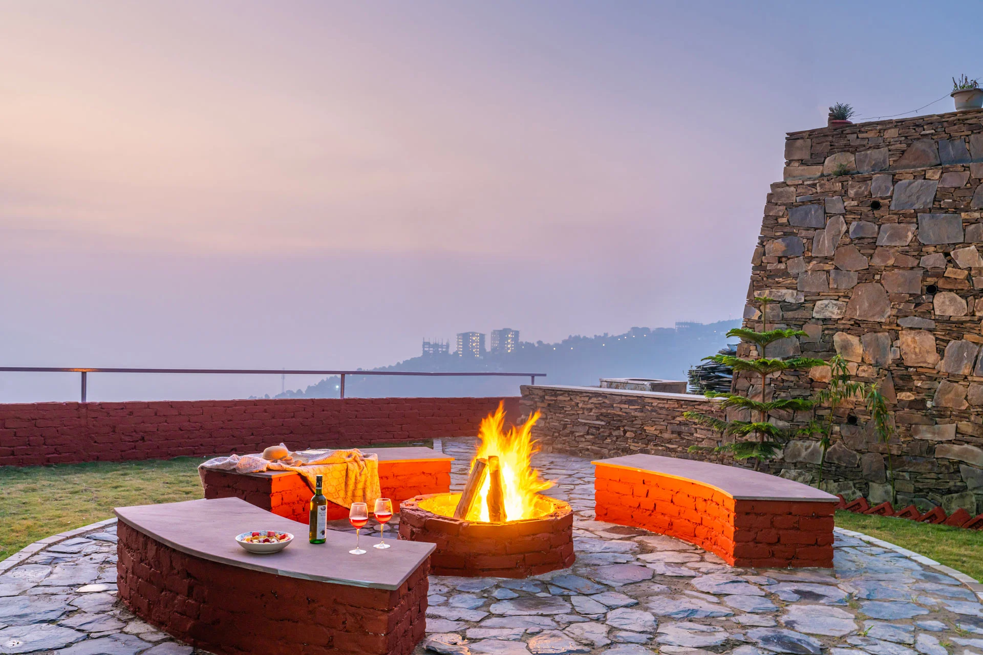 16 Bedroom Hill View Villa In Shimla Featuring red brick facades and gracefully sloping roofs, this homestay in Shimla exudes a uniquely European atmosphere, offering stunning sunset vistas of the Mashobra hills, apple orchards, and strawberry farms.