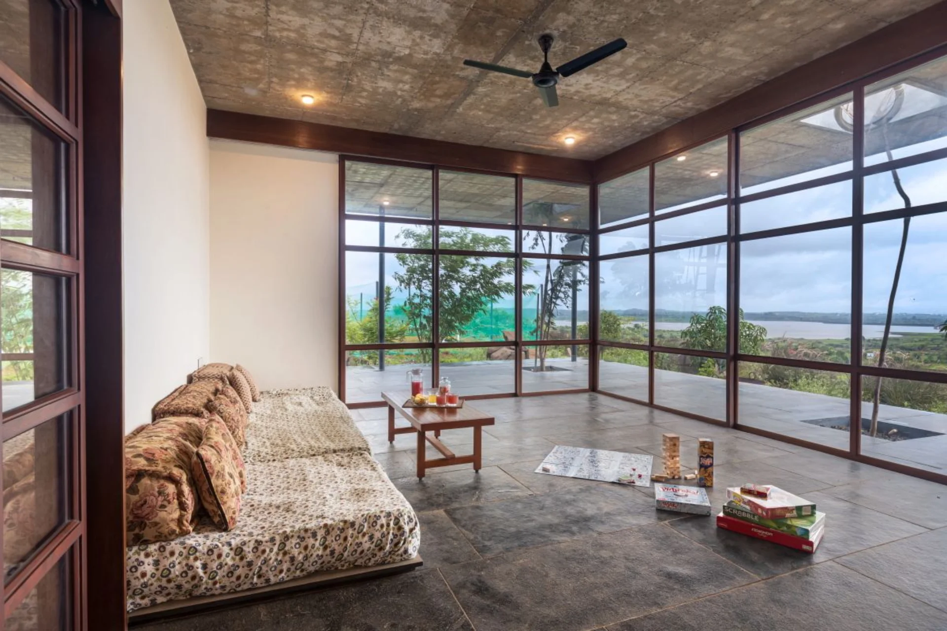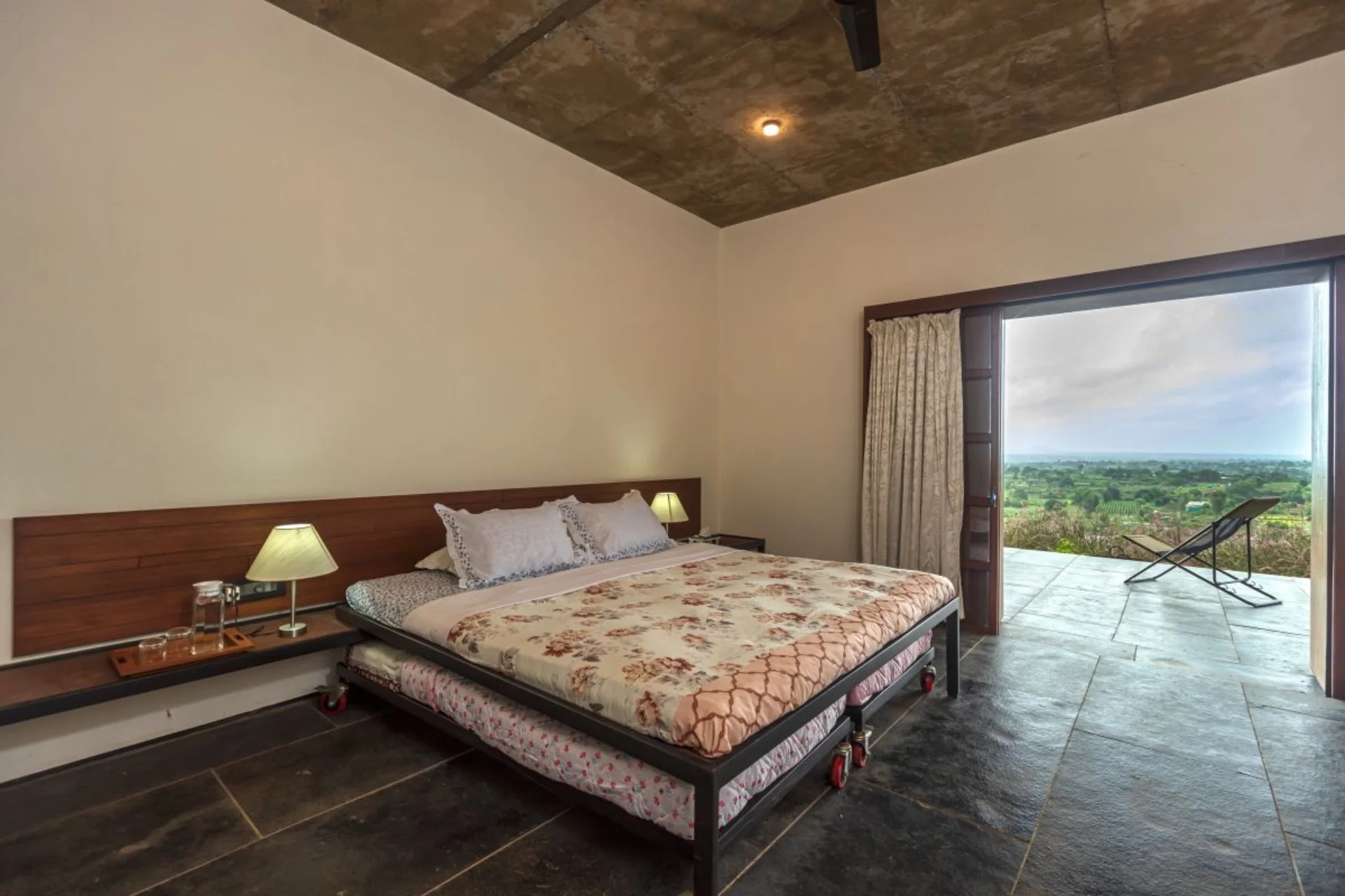 2 Bedroom Pet Friendly Villa In Igatpuri Featuring picturesque vistas of Lake Kadwa in Igatpuri, where trees flourish within the structure. Organize a casual cricket match at the on-site pitch or choose to embark on treks to Kalsubai Peak and Patta Fort. We permit Holi festivities with water only at this residence.