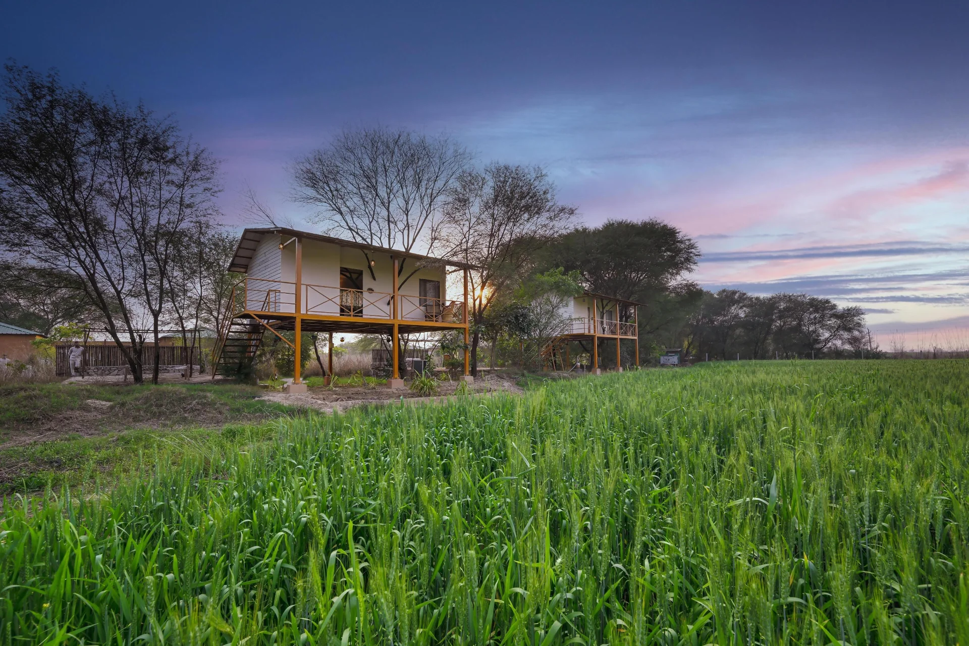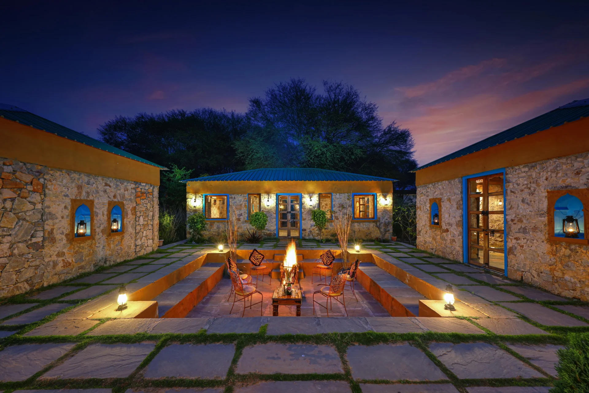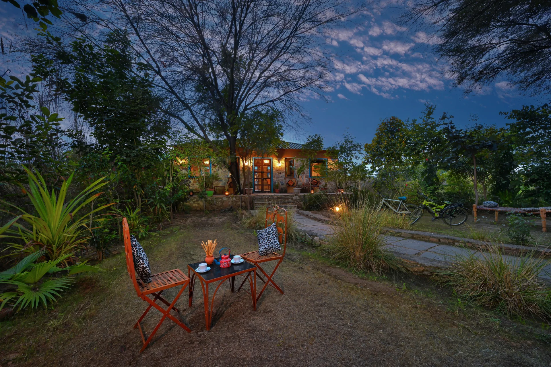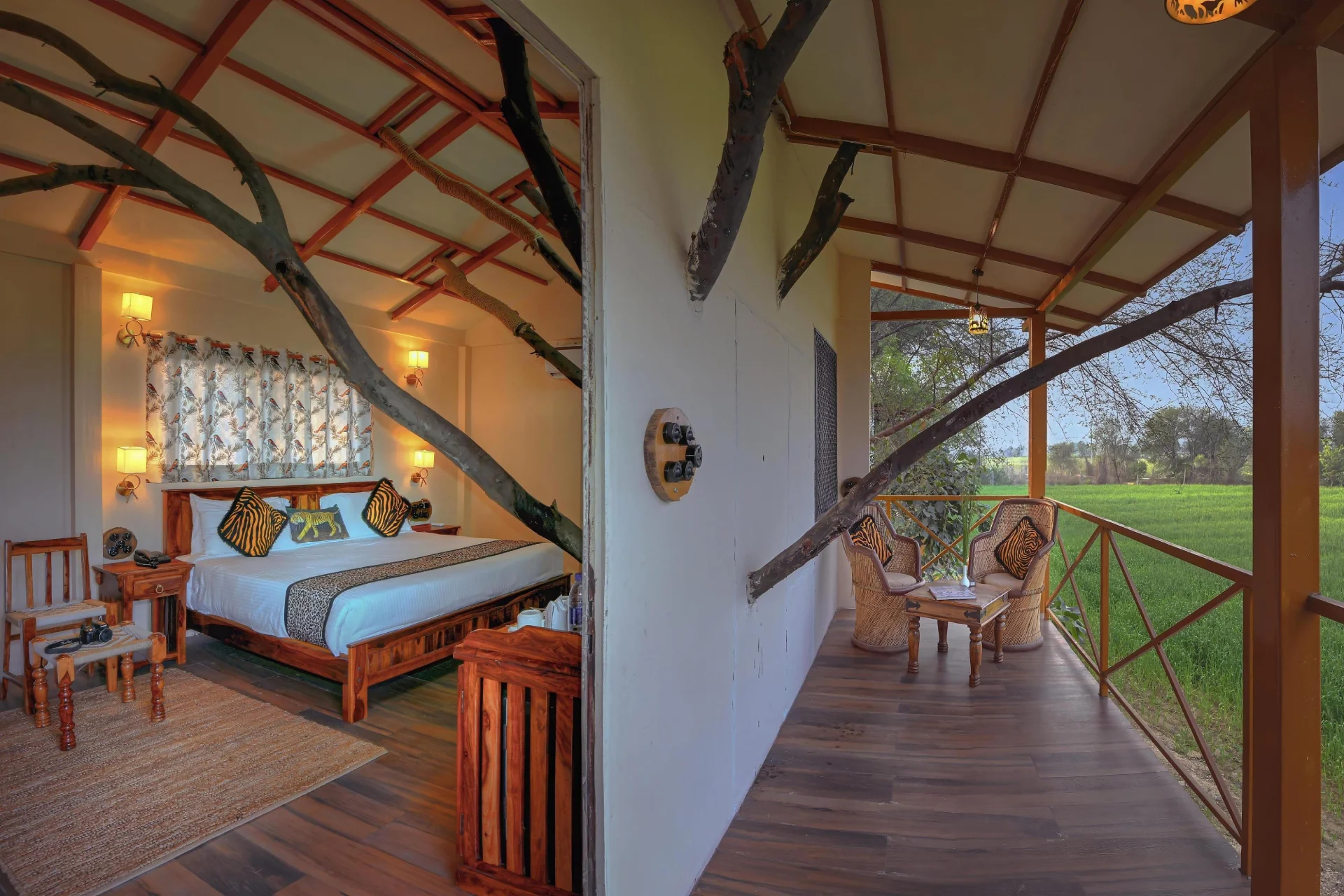 2 BHK Cottage With Plunge Pool In Ranthambore Nestled within the stunning landscape of Ranthambore, this cottage is quietly located in a 5-acre forest resort where the mornings unfold leisurely, and the wilderness thrives just outside your door.