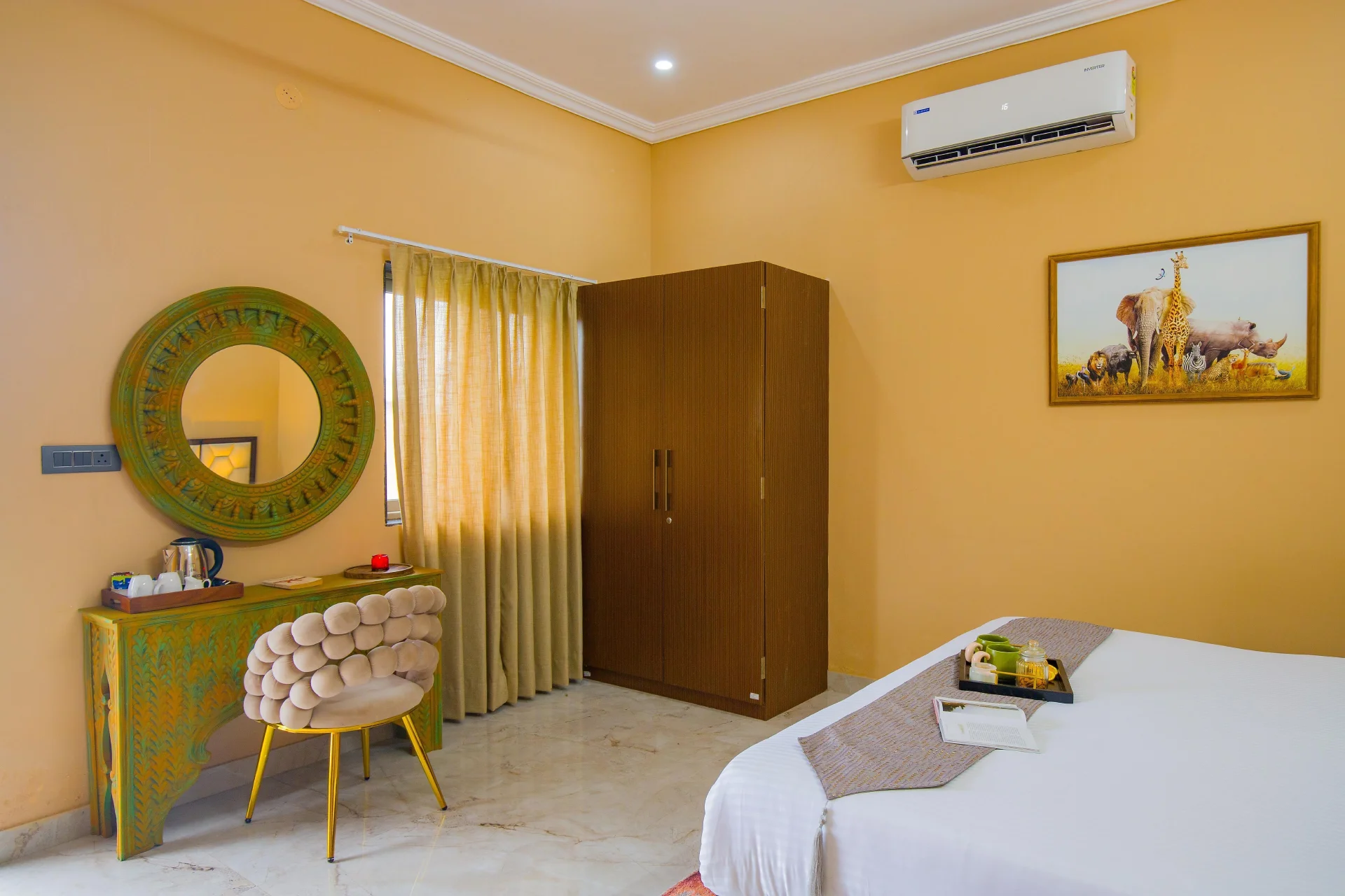 2 BHK Villa With Poolside Gazebo In Udaipur Nestled away from the hustle and bustle while still being conveniently accessible, this property is ideally suited for families, couples, small groups, and even your beloved pets, as it is pet-friendly.