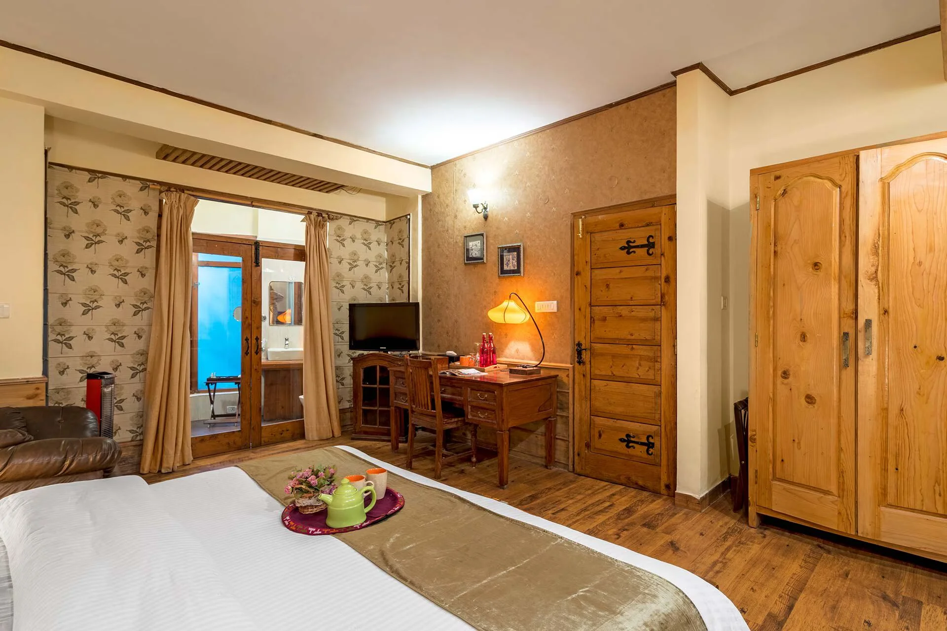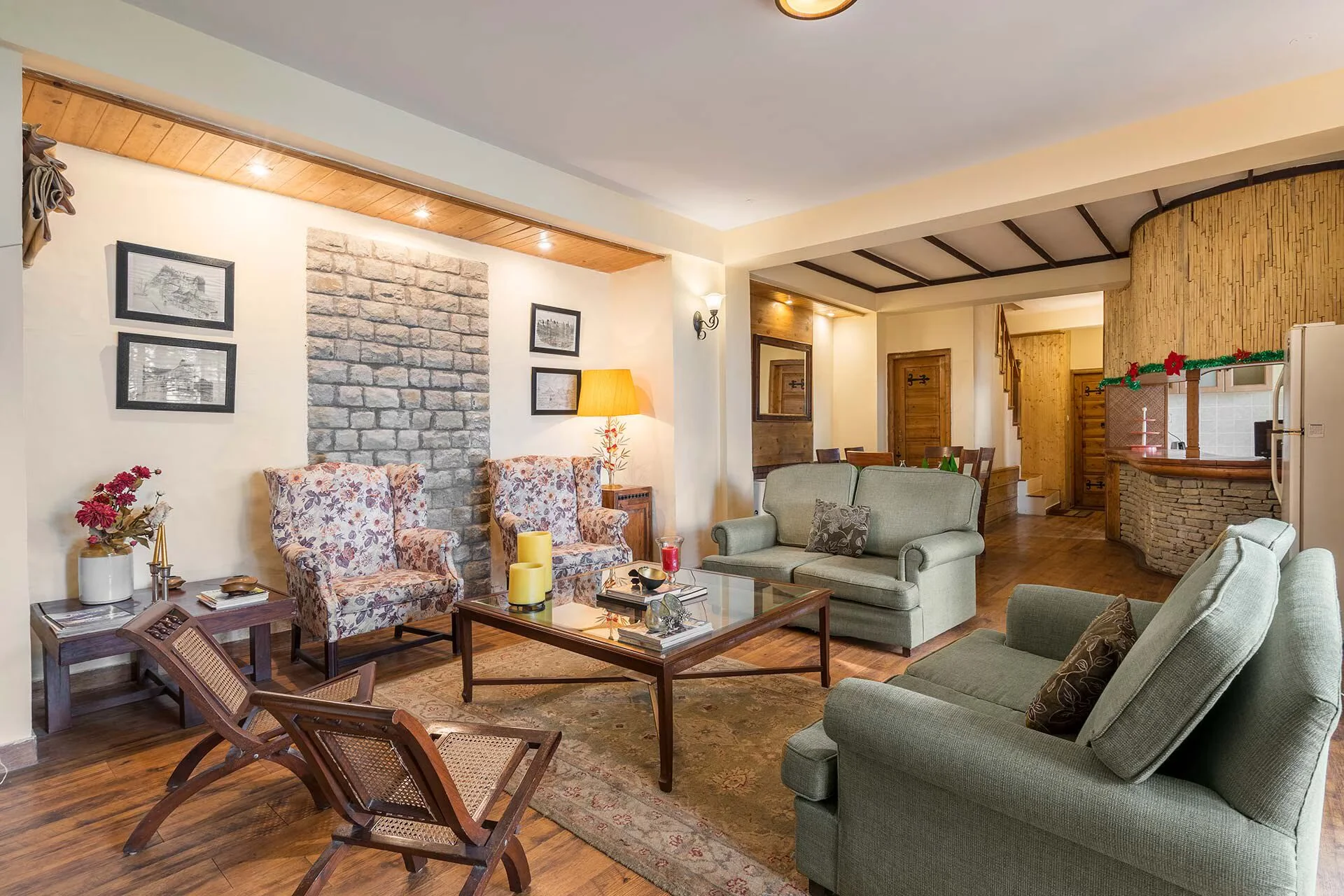 3 BHK Mountain View Villa In Shimla This magnificent residence in Shimla provides ample space and is a treasure trove of luxury. Upon entering, you will encounter traditional home decor complemented by large windows that present a stunning view of the Himalayas and Shali Tibba.