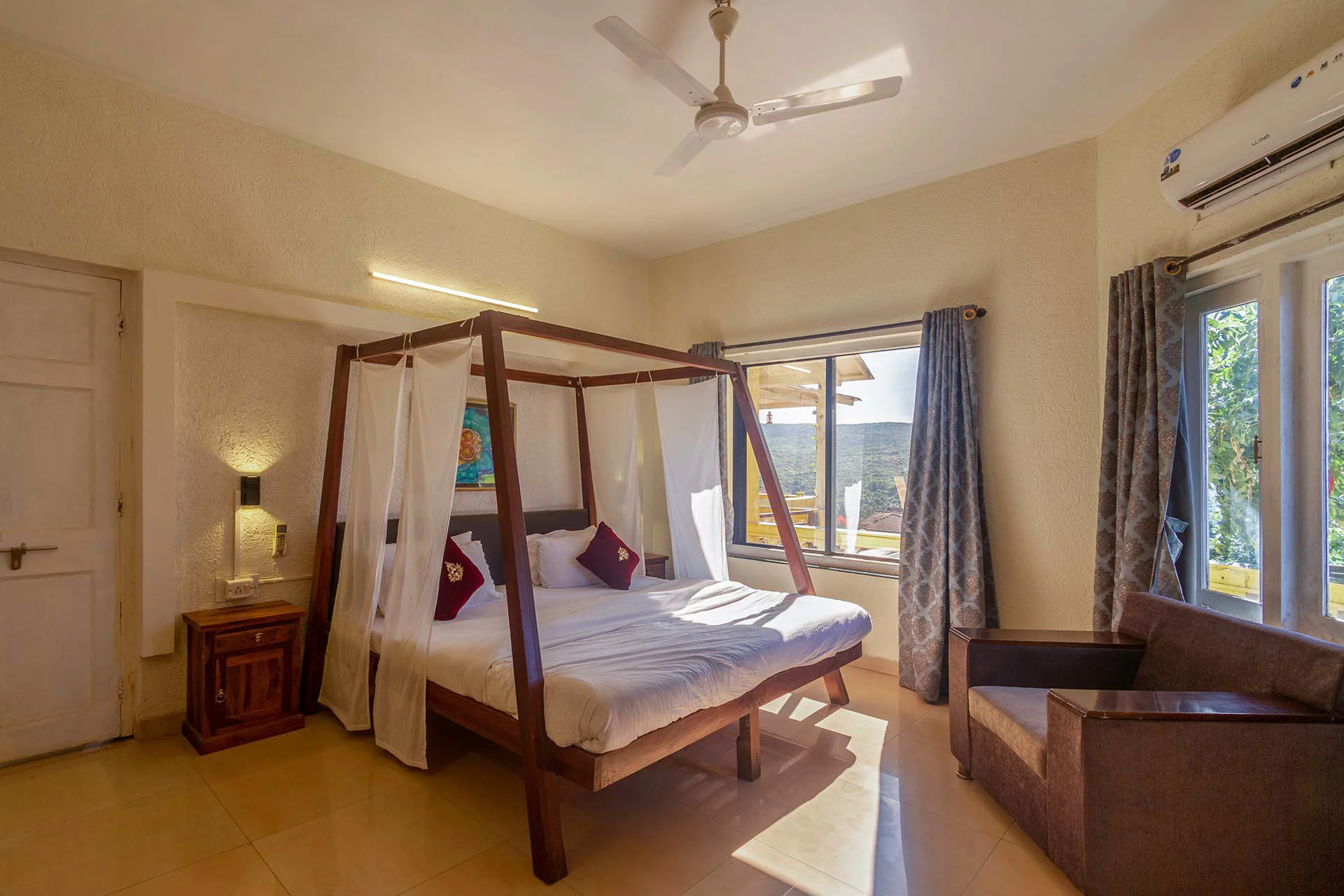 3 BHK Villa With Lawn In Mahabaleshwar Offering the finest vistas in the region, VODMH284 Villa serves as a serene haven on Earth. Enveloped in mist, the entire villa features rooms that open to the captivating hills of Mahabaleshwar. One can enjoy going on treks and trails that are present around the property.