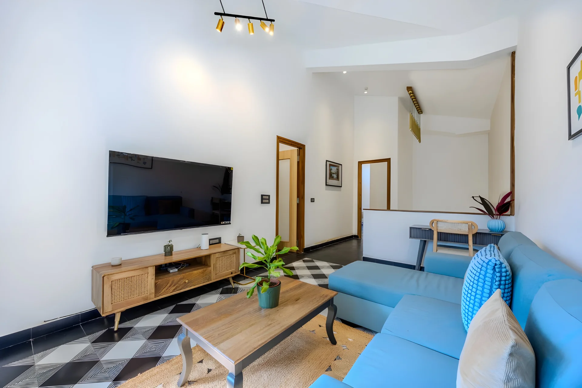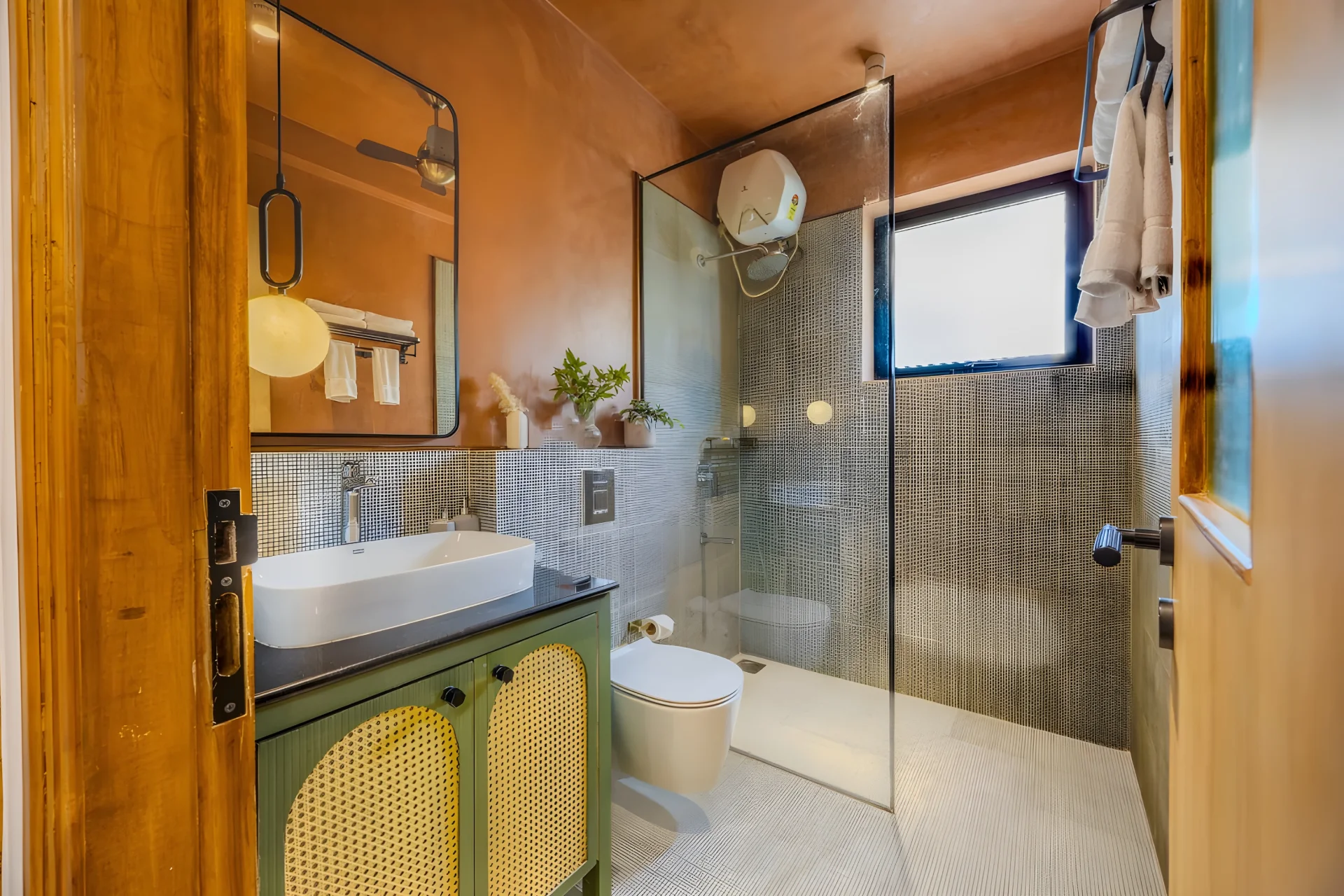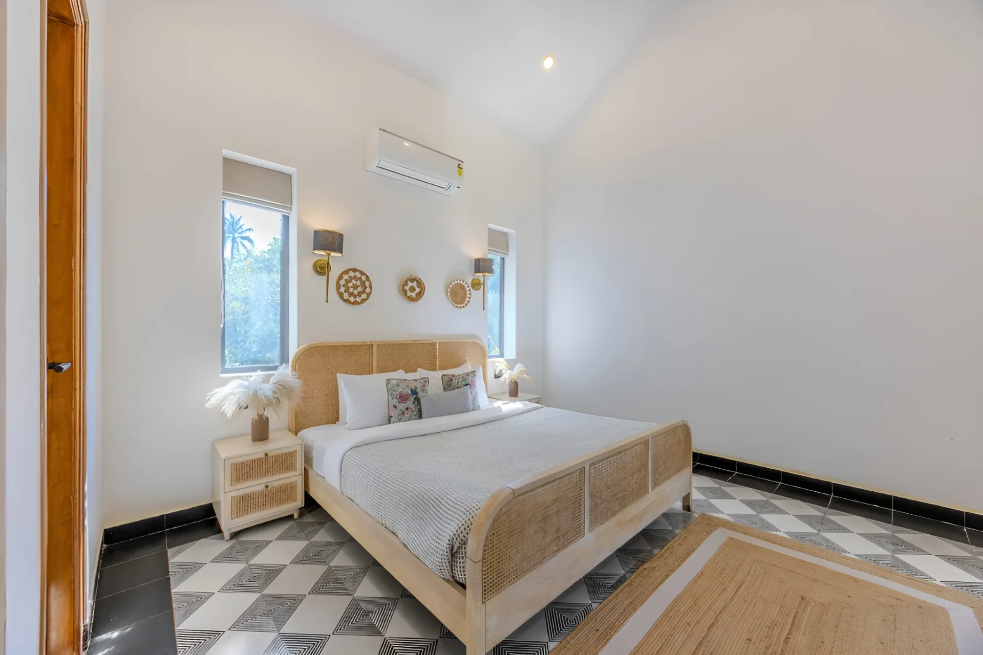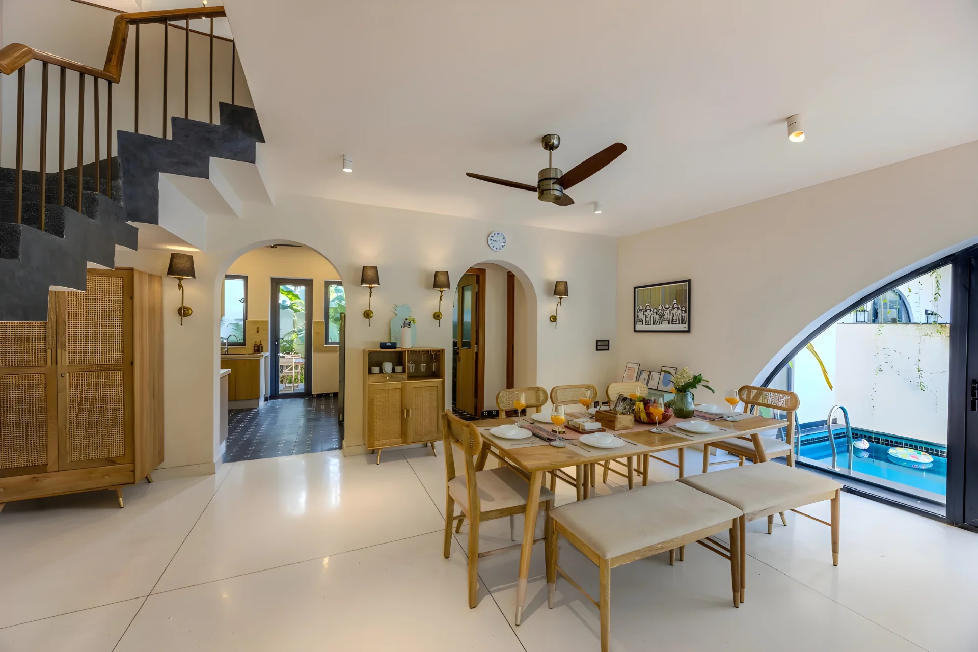 3 BHK Villa With Private Pool In Goa Nestled amidst breathtaking scenic views, this stunning retreat greets you with warm, earthy interiors, enhanced by elements that exude rustic elegance. Each corner narrates a tale of comfort and style, from its meticulously designed spaces to its welcoming atmosphere. Step outside to find a shimmering private pool, ideal for a refreshing swim, or stroll through the manicured lawn and lush garden, where every sight resembles a postcard.