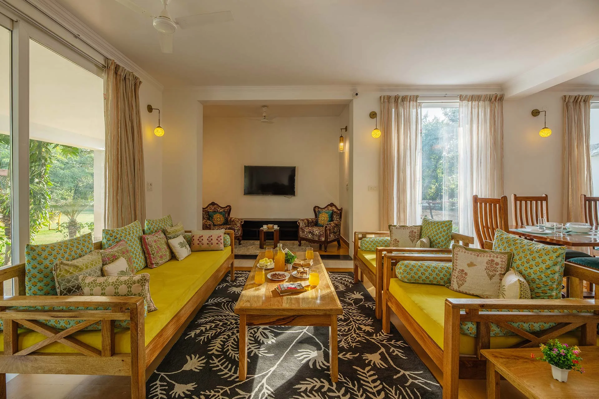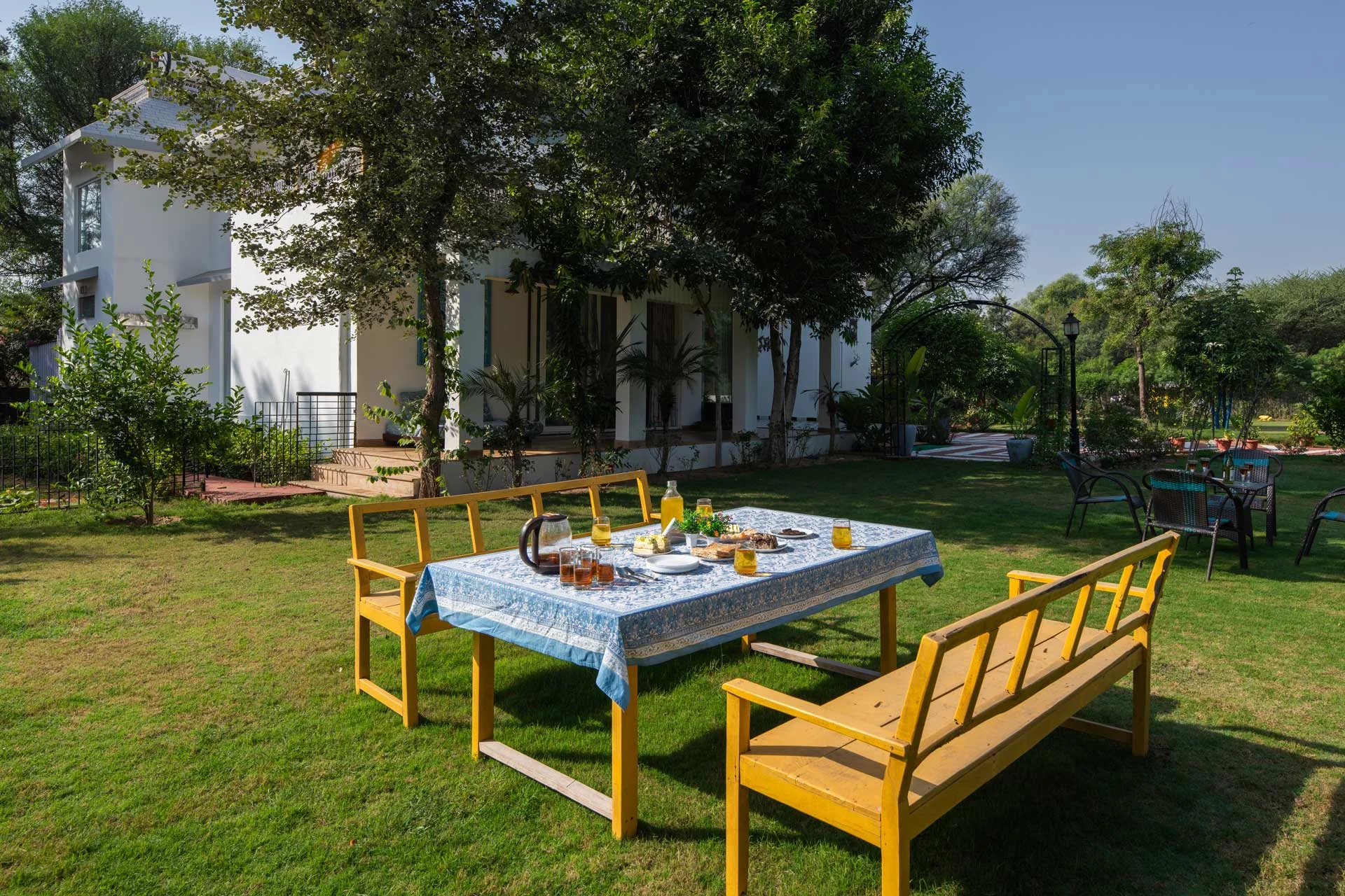 4 Bedroom Lawn Villa In Jaipur Situated on the tranquil periphery of the lively city of Jaipur, VODRJ183 Villa provides a calm yet exhilarating farm experience that combines contemporary and traditional charm. VODRJ183 Villa calls you for a tranquil and vibrant stay, all within a stone’s throw from the Pink City.