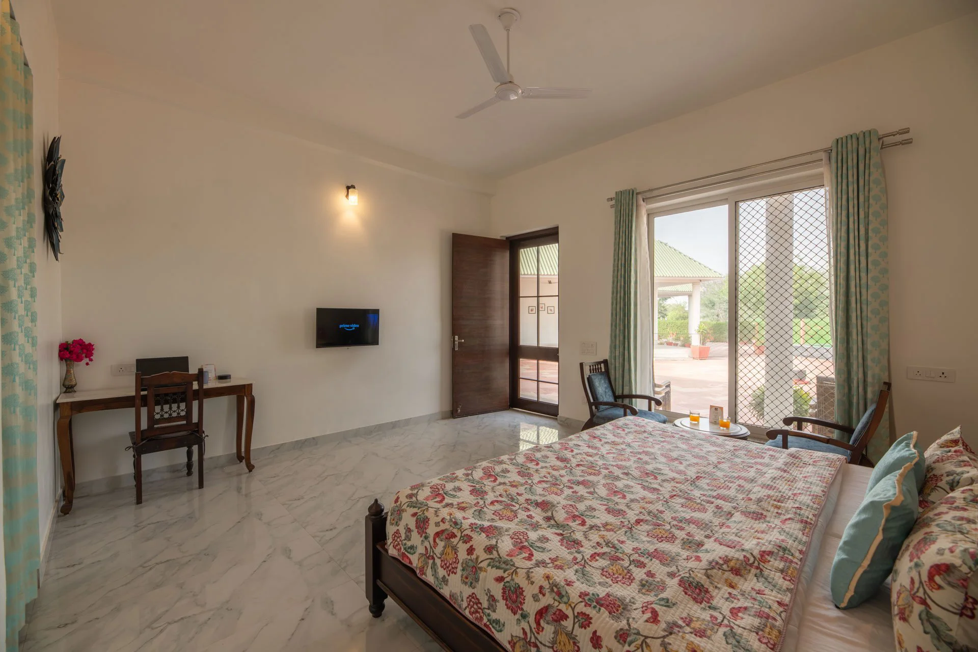 4 BHK Pool Villa In Jaipur A unique retreat that harmoniously combines luxury and nature—ideal for travelers, creators, and dreamers. With its exquisite fusion of comfort and the natural environment, VODRJ202 Villa serves as a perfect getaway to relax and enjoy the best of Jaipur.