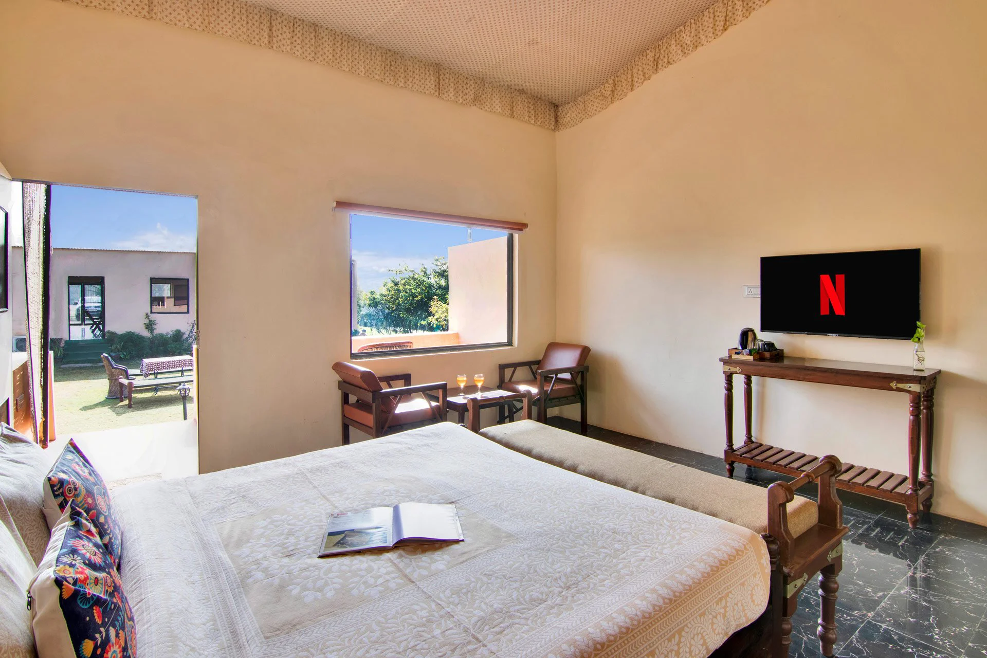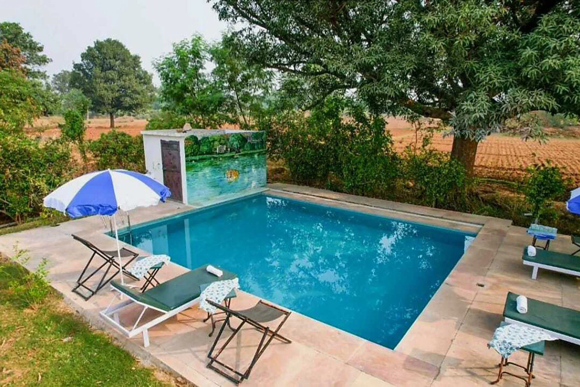 4 BHK Villa With Lawn In Ranthambore Welcome to the VODRJ225 a stunning retreat. This captivating property features a perfect combination of rustic elegance and contemporary luxury, spread over three unique units, each radiating its own charm.