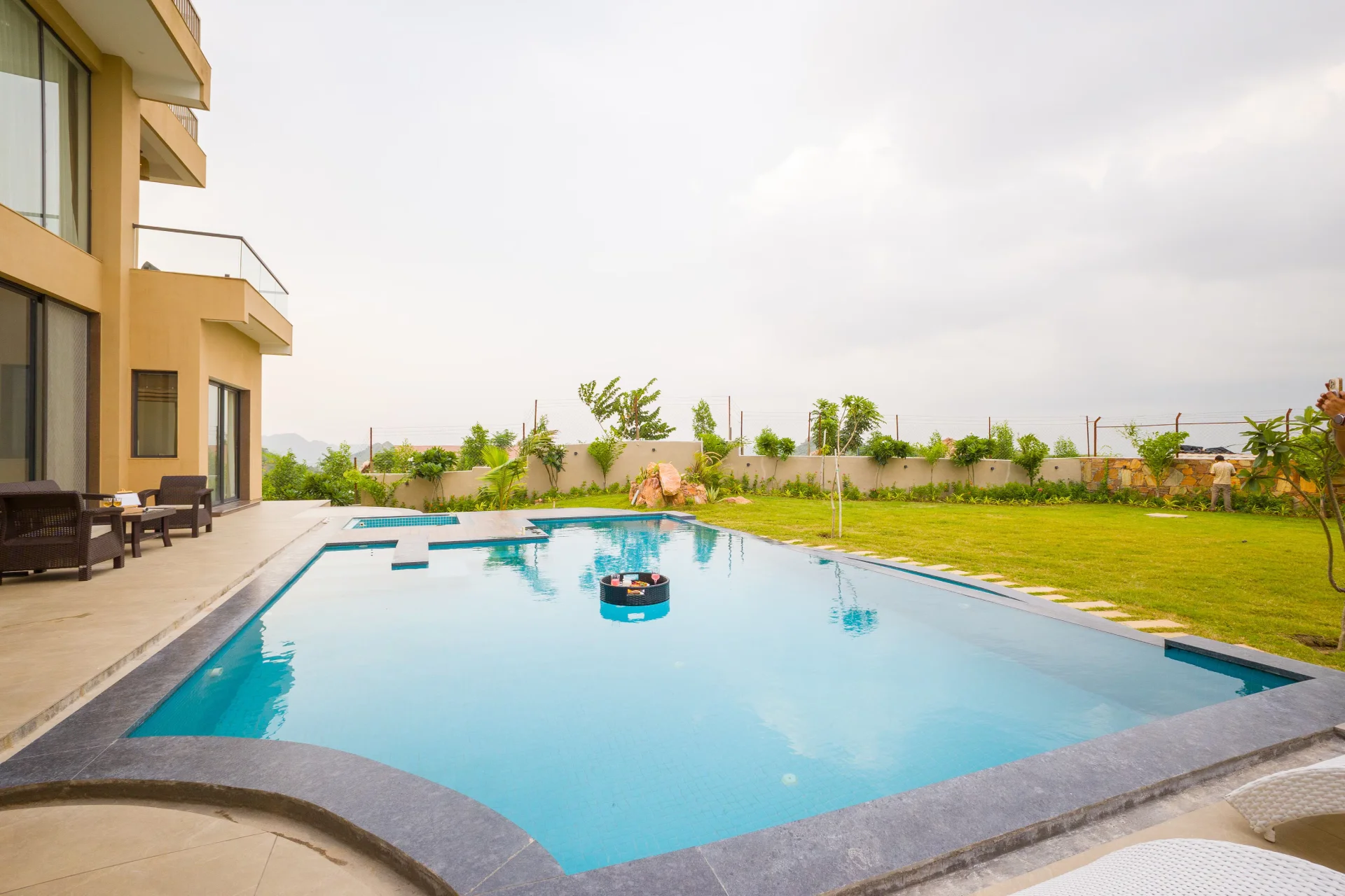 4 BHK Villa With Swimming Pool In Eklingji The VODRJ265 Villa located in Eklingji provides a generous accommodation. This property includes a private pool, a sun terrace, and a verdant garden, guaranteeing plenty of room for relaxation. Visitors can take advantage of the spa and wellness center and a hot tub.