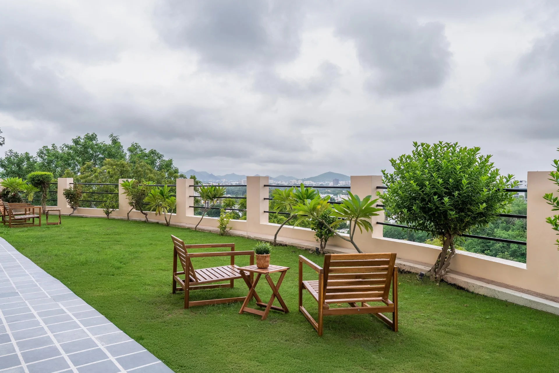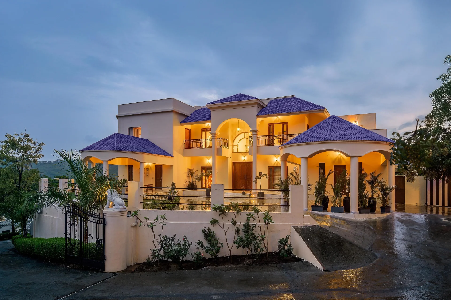 5 BHK Hilltop Villa In Udaipur This villa is ideal for tourists and travelers. It offers a variety of amenities that ensure your comfort. These amenities consist of: a view, a balcony/terrace, a fireplace, and several others.
