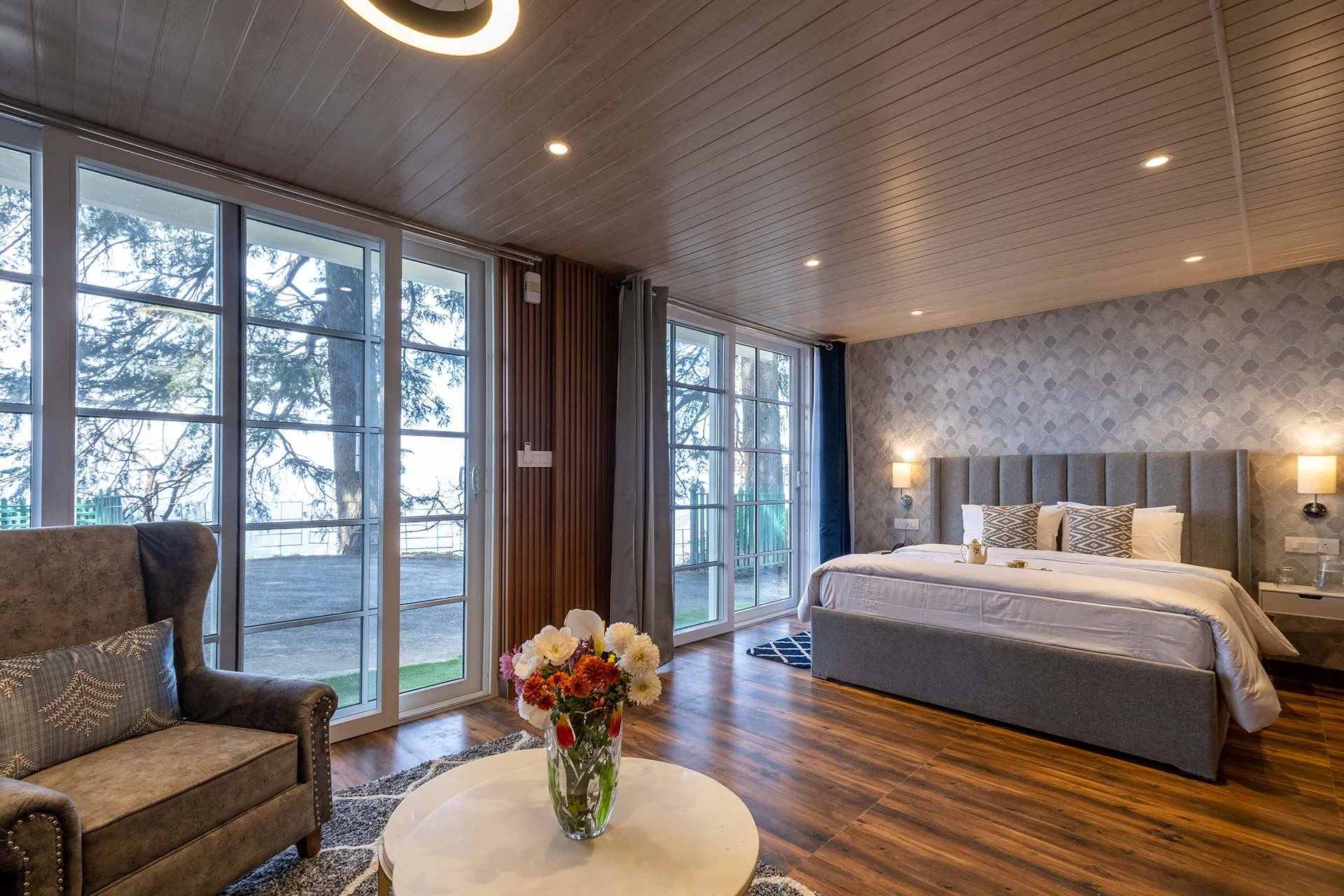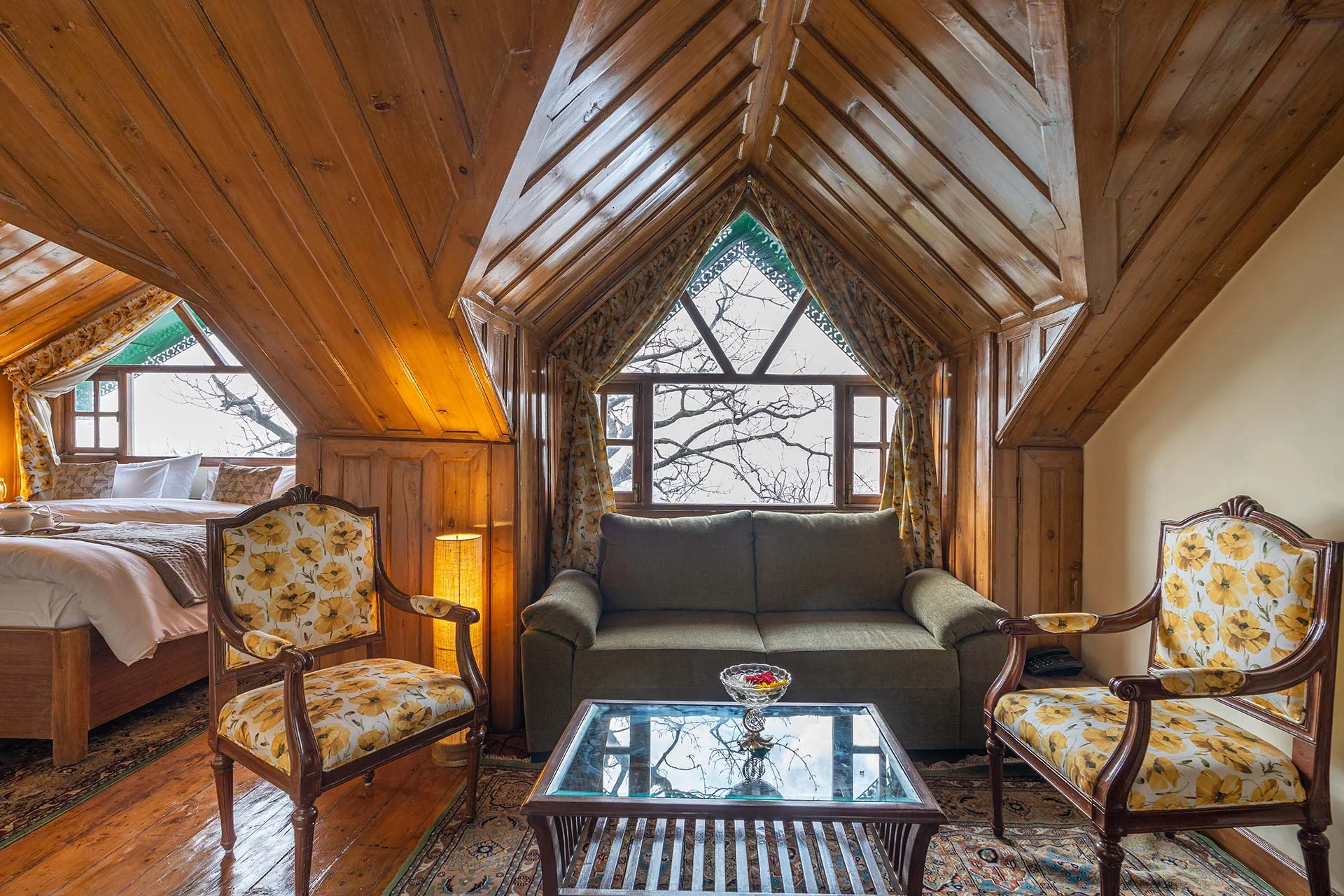 8 Bedroom Cottage With Lawn In Shimla Featuring stunning landscapes, lively facades, and unique gable roofs, VODHP06 Cottage resembles a paradise. It is not only situated amidst nature’s embrace, but it also offers unparalleled views of the valley.