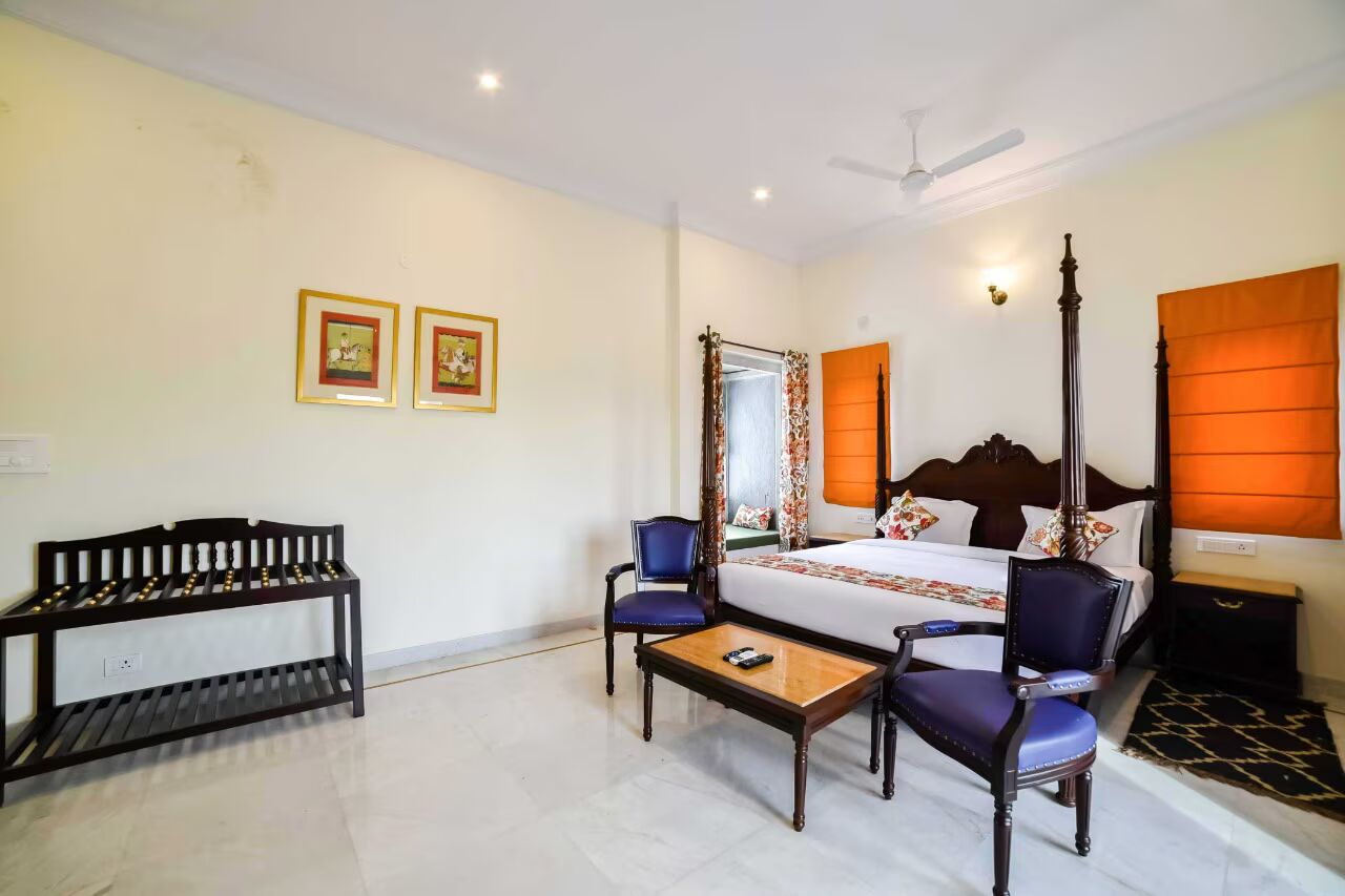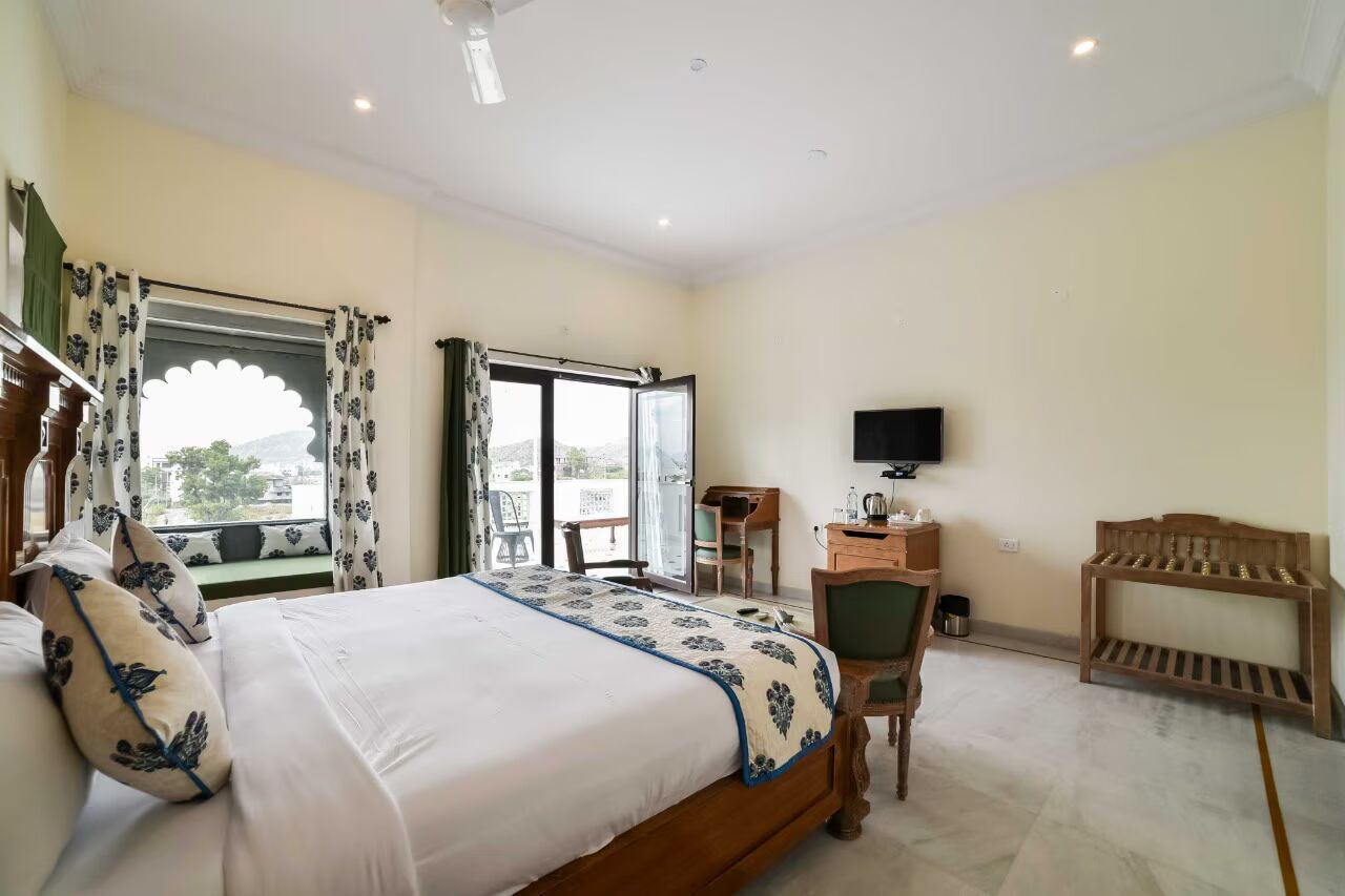 VODRJ50 is a luxurious 3 star hotel located in Udaipur, Rajasthan, India. Situated near the serene Fatehsagar Lake, the villa offers a tranquil retreat amidst lush greenery and picturesque landscapes. The interiors are well-appointed, with traditional Rajasthani accents and modern amenities. Each room is tastefully decorated and offers a comfortable and relaxing environment. Its features spacious rooms with en-suite bathrooms, comfortable beds, rooftop infinity pool and all the necessary facilities to make your stay a memorable one.