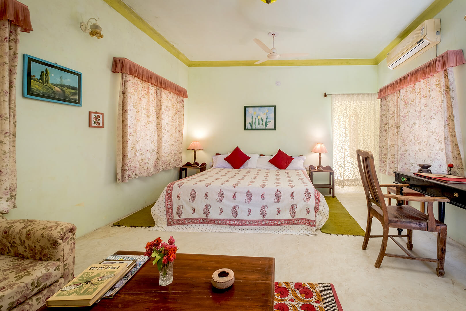 Well known as one of the best resorts in Jawai, our Jawai resort has beautiful villa type cottages decorated by the ladies of the house with personal attention to the details to create local traditional ambience for the rooms. There are 10 villas based on various local themes so as to give our clientele the best of mystic Rajasthan. Each cottage has a private verandah and a garden sit-out to relax and watch the sun go down on the panoramic aravallis.