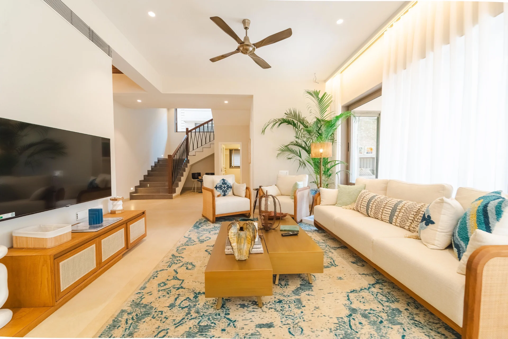 The interiors showcase contemporary dรฉcor featuring natural rattan and neutral color schemes, effortlessly merging style with comfort. Recognized as one of the premier homestays in Goa, this Villa distinguishes itself as a sanctuary where nature, elegance, and genuine hospitality converge in perfect harmony. Situated 77 km from Dr. Babasaheb Ambedkar International Airport, the villa offers convenient access to local attractions. The surrounding region provides a variety of activities, including beach excursions and sightseeing.
