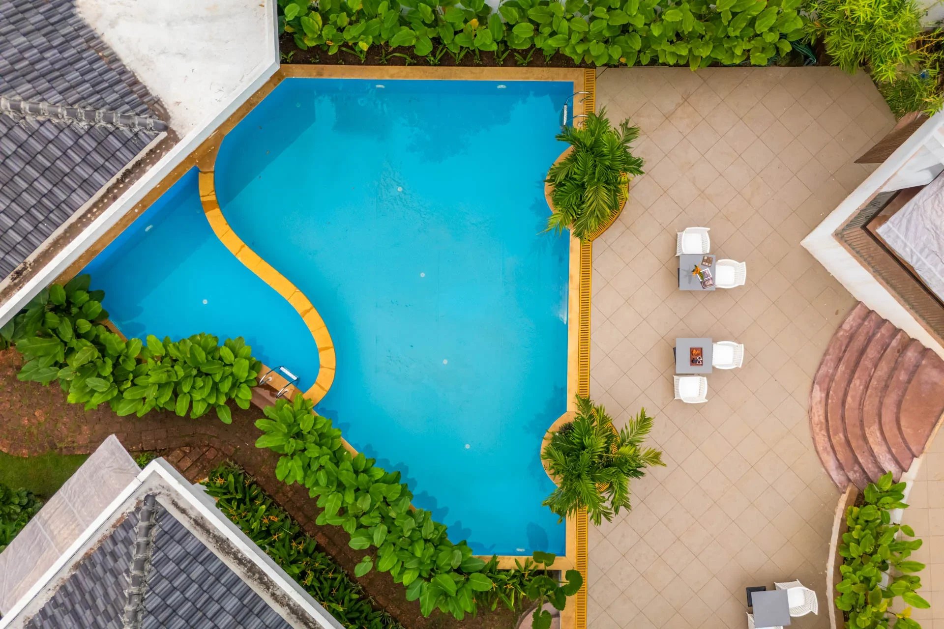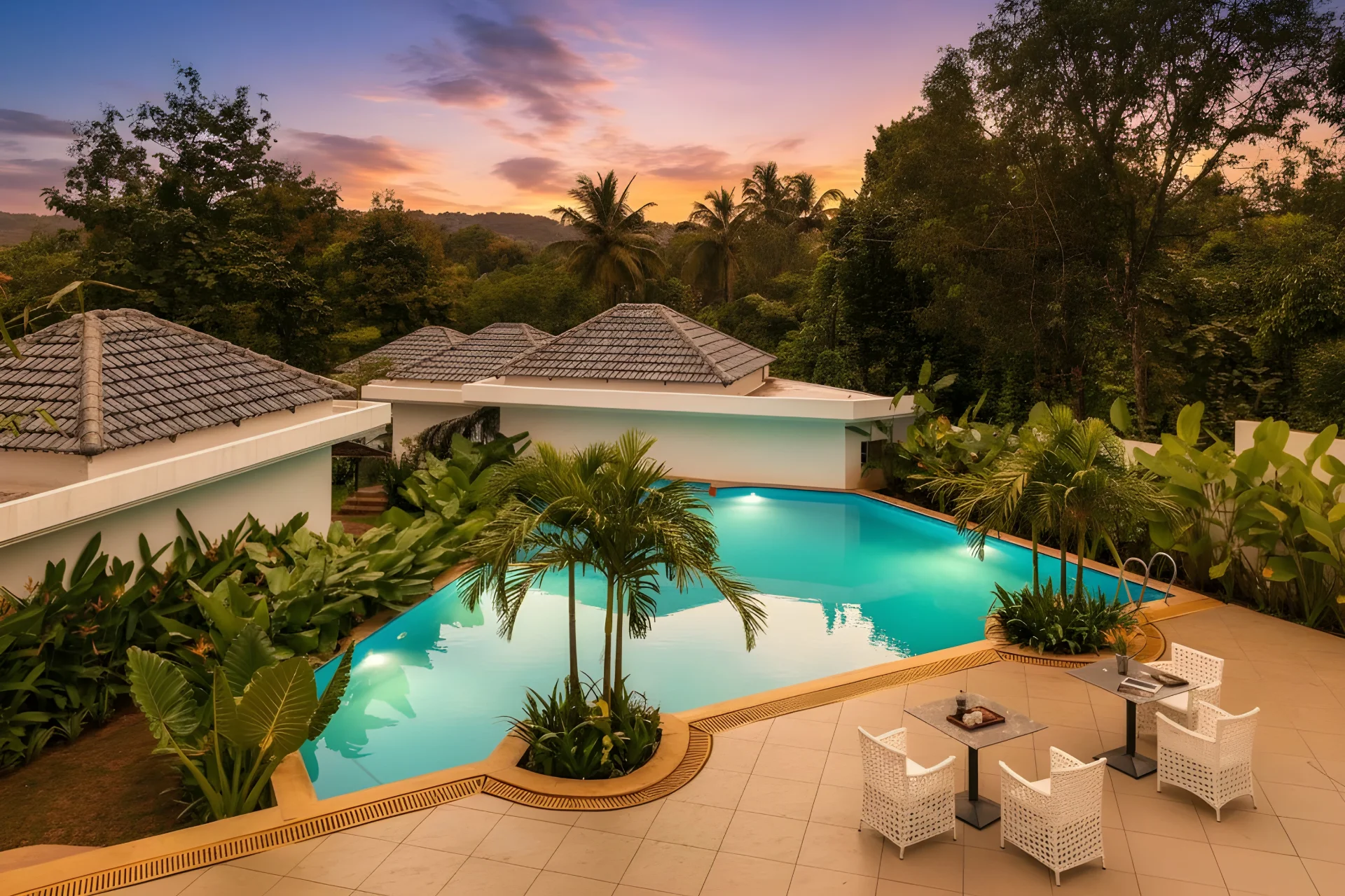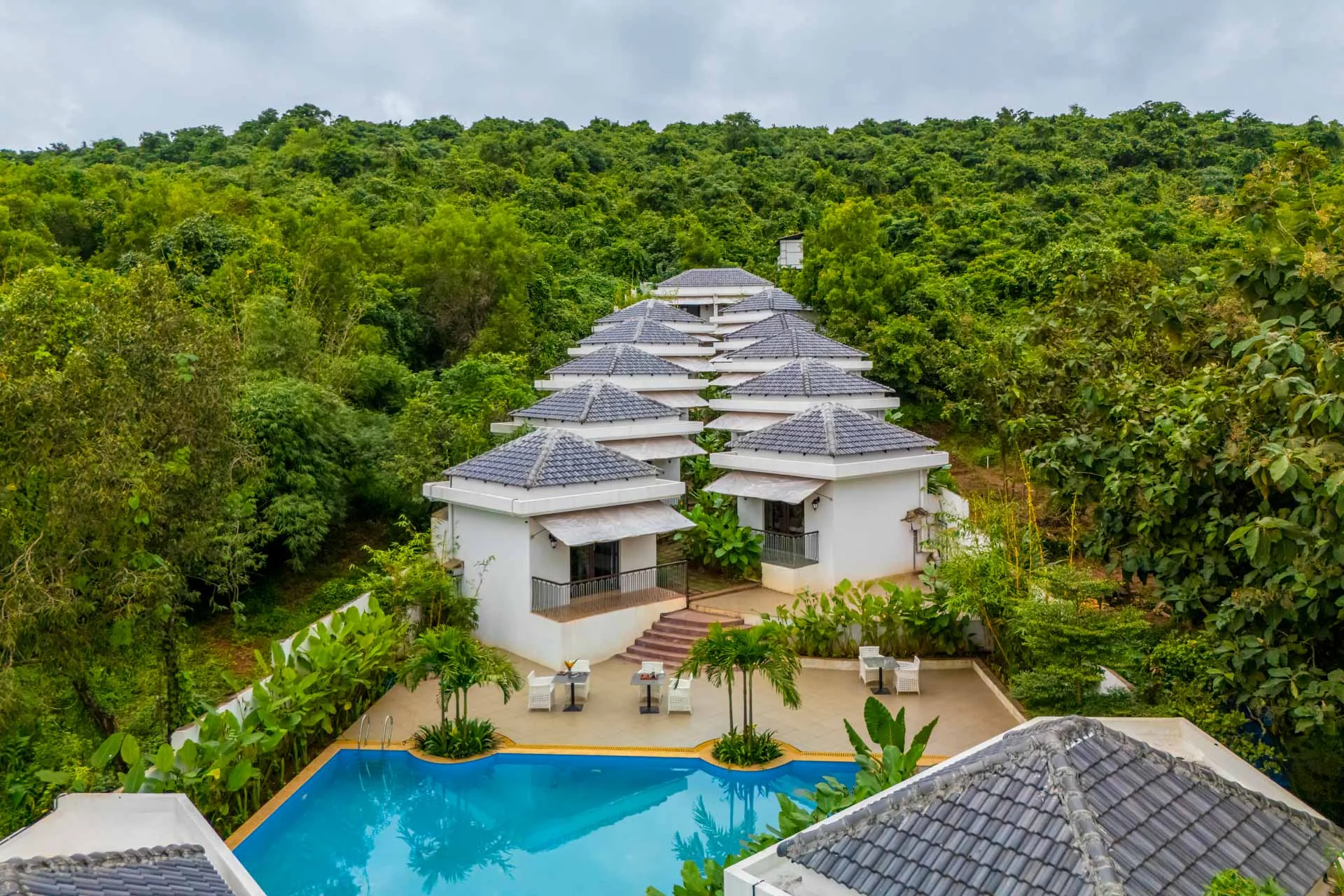 18 Room Mountain View Resort In North Goa Retreat to VODGA119, an expansive sanctuary located in Mandrem, designed for sizable groups in search of both excitement and tranquility. At the core of this getaway lies the private pool, a vibrant and welcoming expanse of blue where you can relax beneath the sun.