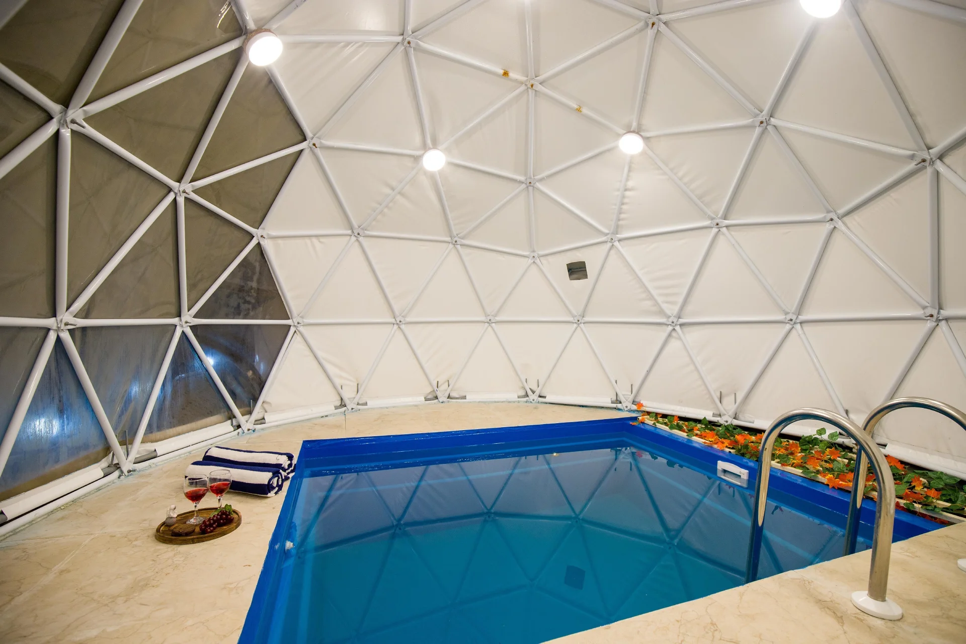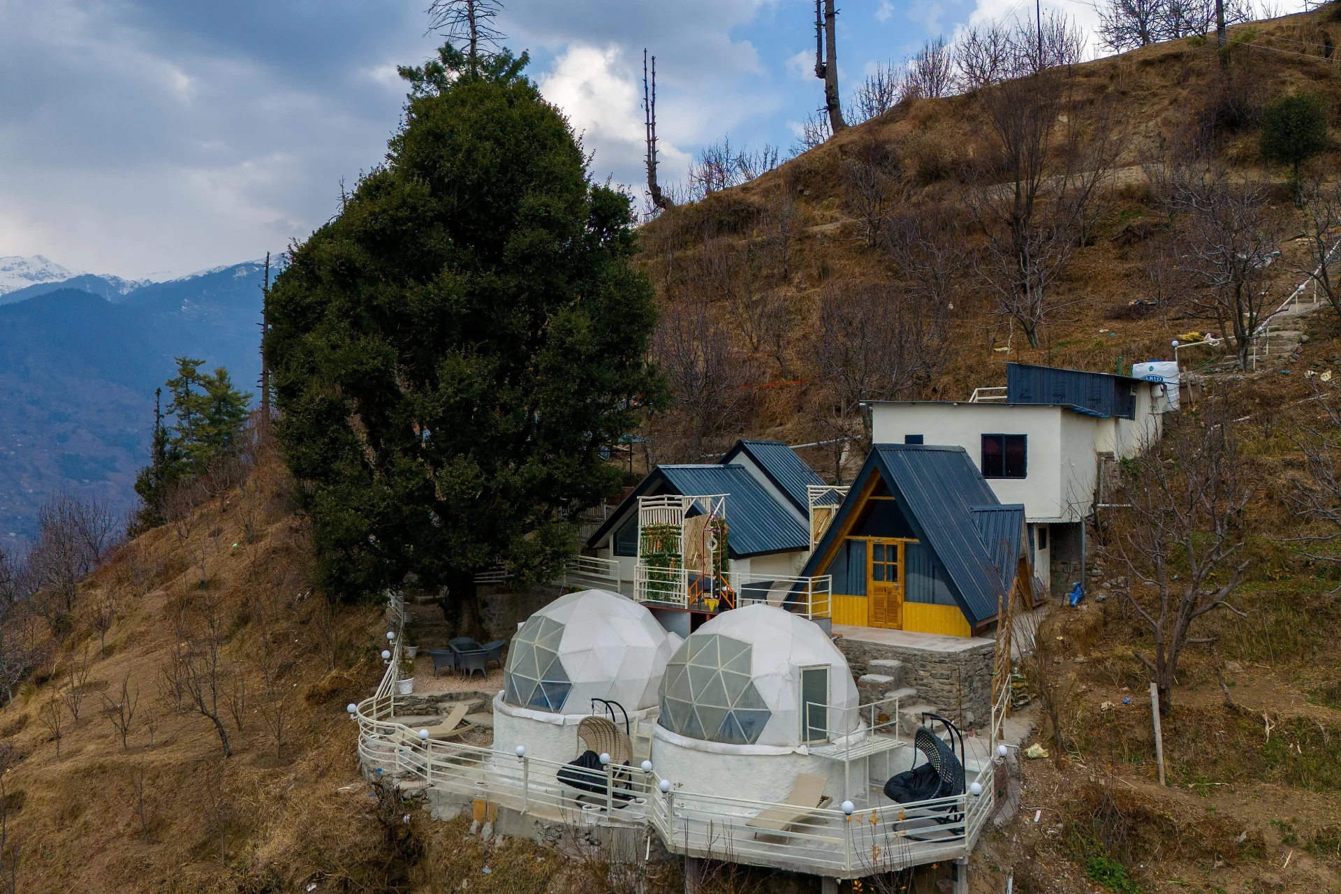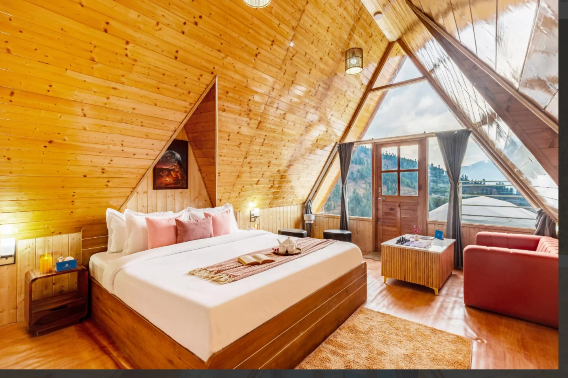 2 Bedroom Cottage With Pool In Manali VODHP46 Cottage located in Chachogi, Himachal Pradesh, offers two space-themed cottages with a pool beneath geodesic domes. Situated only 3 km from Naggar, guests can discover treks, temples, and tranquil Himalayan vistas, making it an ideal destination for family vacations or adventurous retreats.