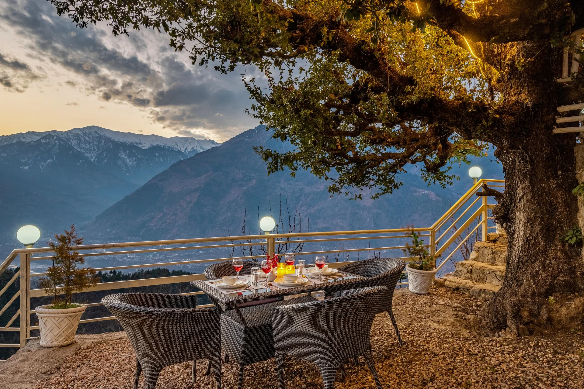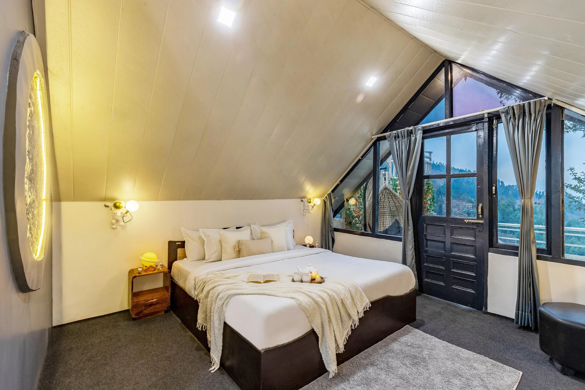 VODHP46 Cottage in Manali provides a villa featuring two bedrooms. Guests can enjoy a swimming pool with a scenic view, a sun terrace, and complimentary WiFi. The property includes daily housekeeping services, meals for children, an outdoor seating area, and full-day security. There is also free private parking available on-site. Situated in Chachogi Village near Naggar, Himachal Pradesh, VODHP46 Cottage is a luxurious villa tailored for those in search of a distinctive mountain getaway. This contemporary retreat boasts private cottages equipped with geodesic dome-covered heated pools and celestial-themed interiors, ideal for crafting an unforgettable experience.