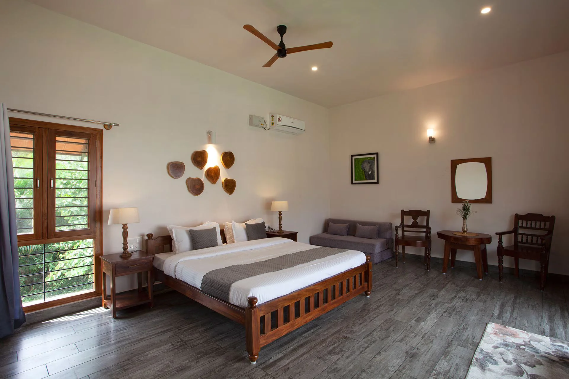 2 Bedroom Hill View Villa In Mysore Exuding classic appeal and the quaint beauty of the nearby hills, VODSI10 Villa is a snug homestay in Mysore. A stunning vintage ceiling adorned with tiles elegantly hangs above, bringing warmth to the rooms of this homestay. Before entering the rooms, one will be greeted by the greenery of the enchanting courtyard.