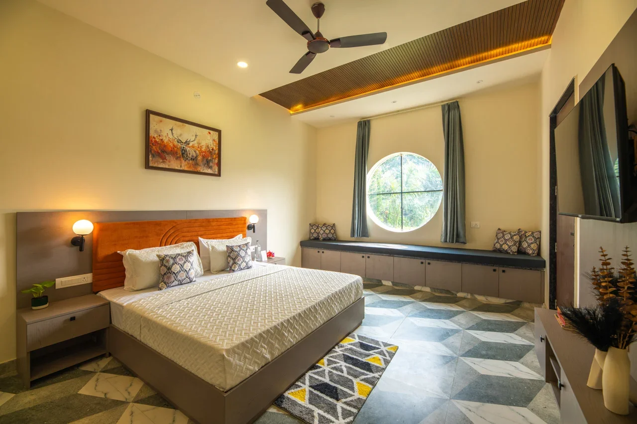 2 Bedroom Pvt Pool Villa In Udaipur VODRJ258 stands out as one of Udaipur’s most captivating villa getaways, providing a perfect combination of peace, picturesque landscapes, and sophisticated comfort. In this Villa, every aspect is meticulously crafted to transform your visit into an unforgettable and tranquil sanctuary.