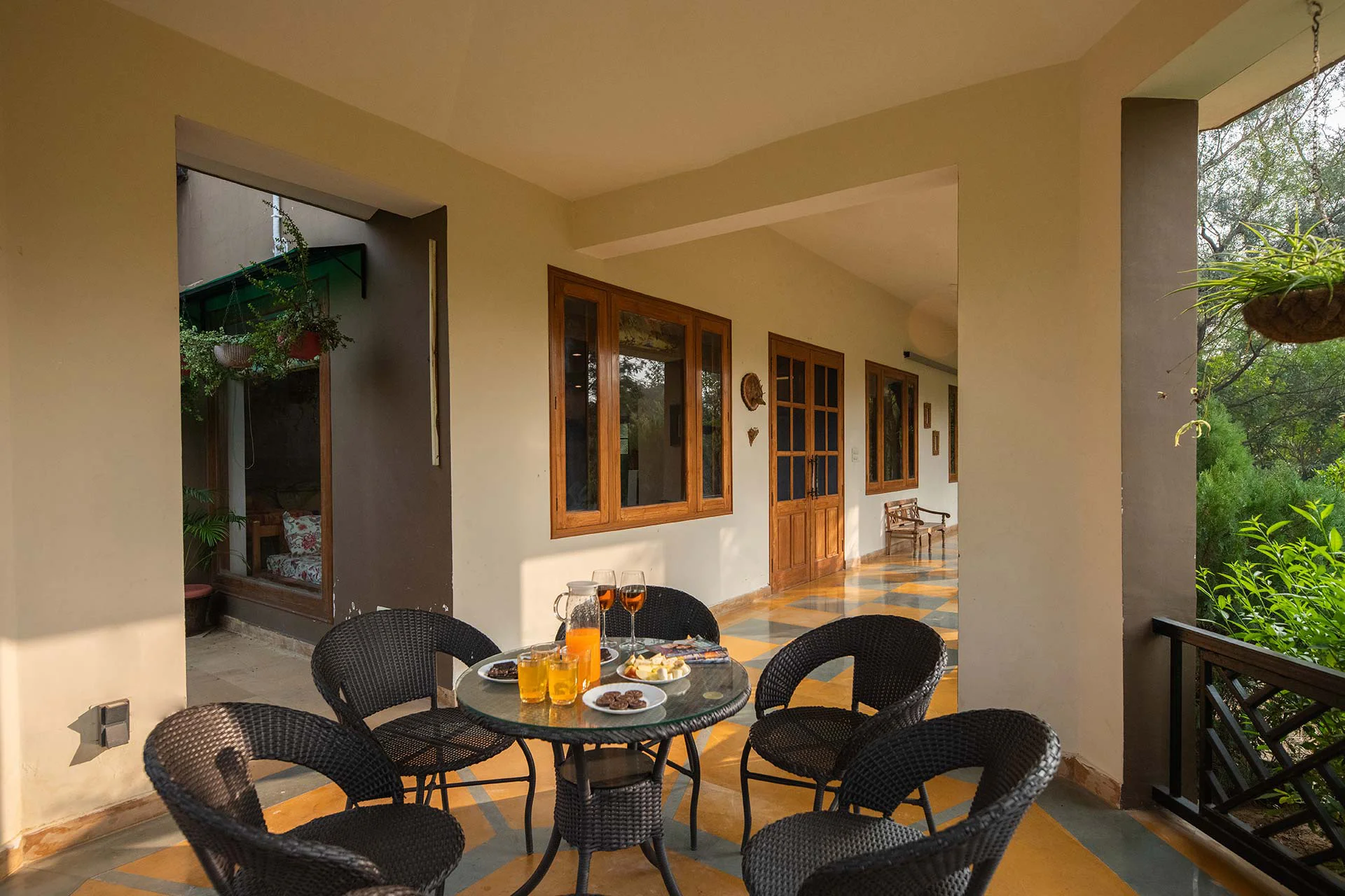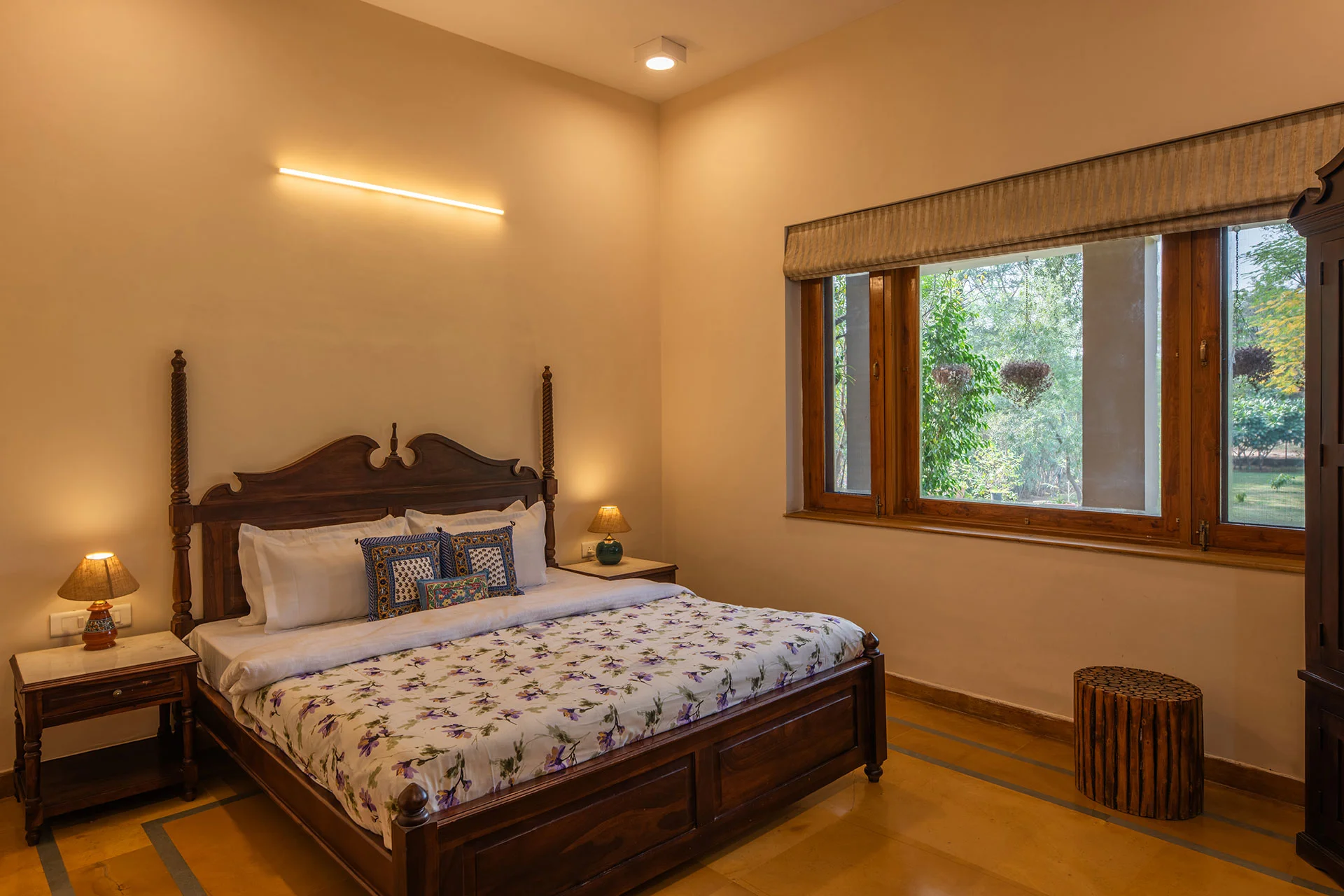 2 BHK Lawn Villa In Jaipur Situated within the lush embrace of nature, VODRJ184 Villa serves as a haven of peace and refinement. Embraced by a verdant canopy of trees, this opulent residence provides a captivating view of the forest, where calmness intertwines with sophistication.