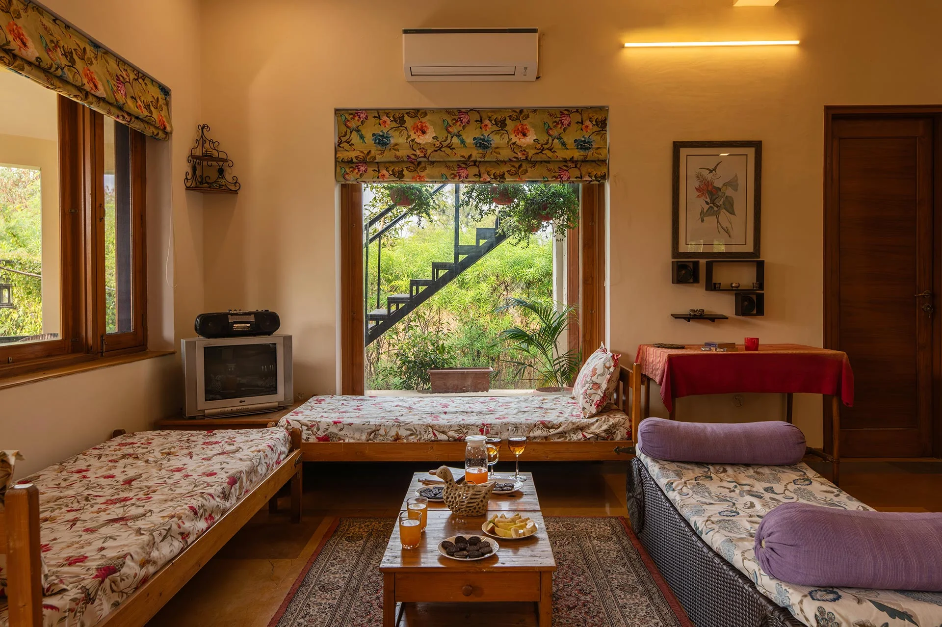 For guests’ convenience, free on-site private parking is provided. The reception staff are fluent in both English and Hindi. Escape the monotony of daily life and the hustle of the city as this home invites you to relax, offering a perfect retreat where the sounds of nature blend seamlessly with modern comforts. It serves as a sanctuary for those in search of peace, rejuvenation, and memorable experiences in the embrace of nature. Situated 50 km from Jaipur International Airport, the villa is conveniently located near attractions such as Amber Fort, which is 30 km away, and City Palace, located 38 km from the property.