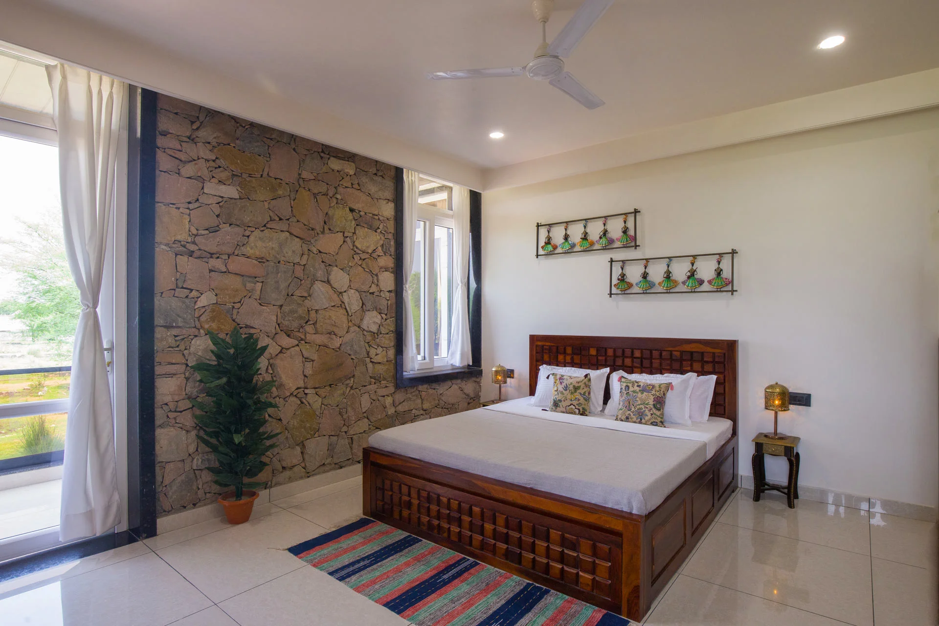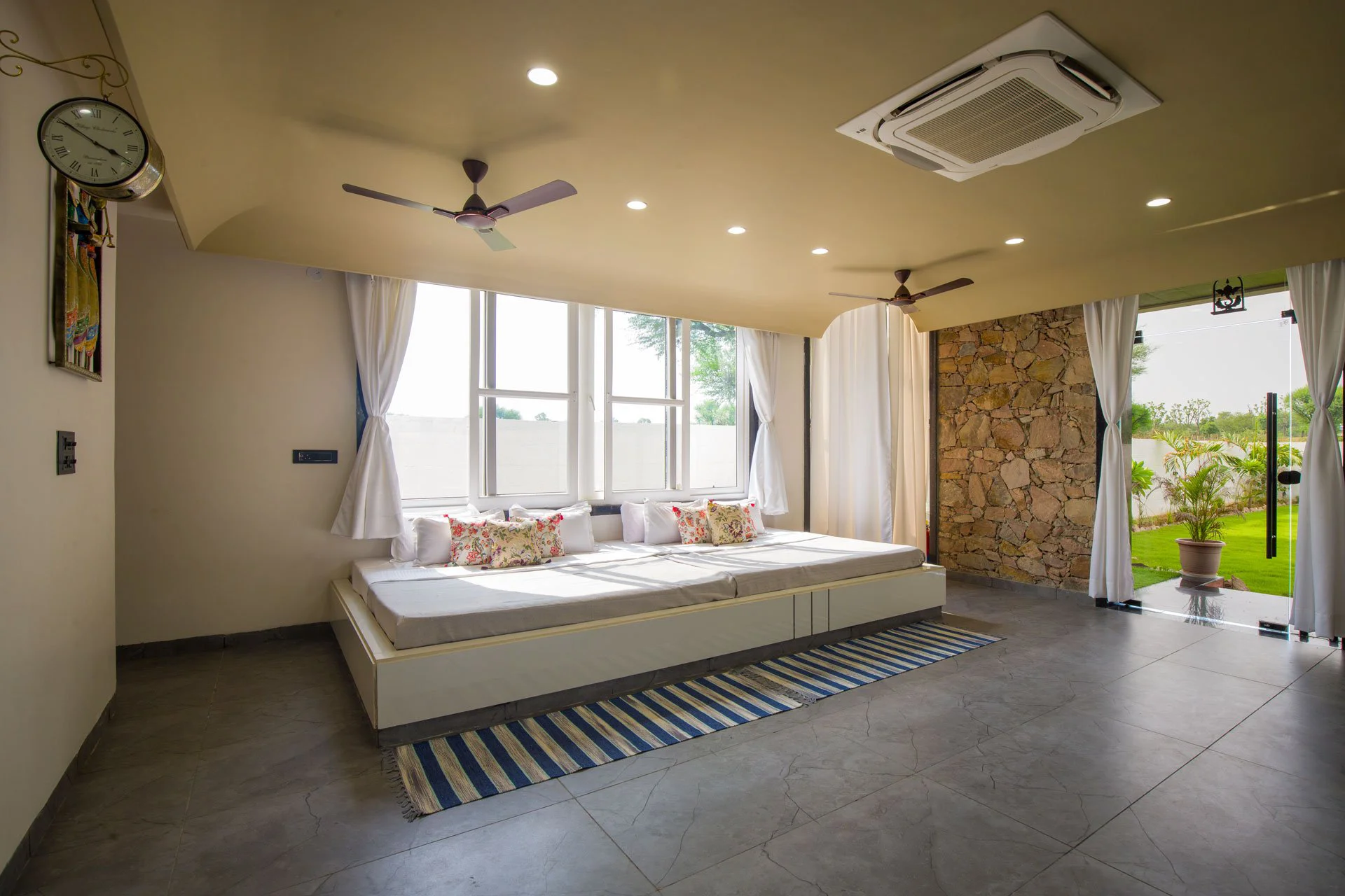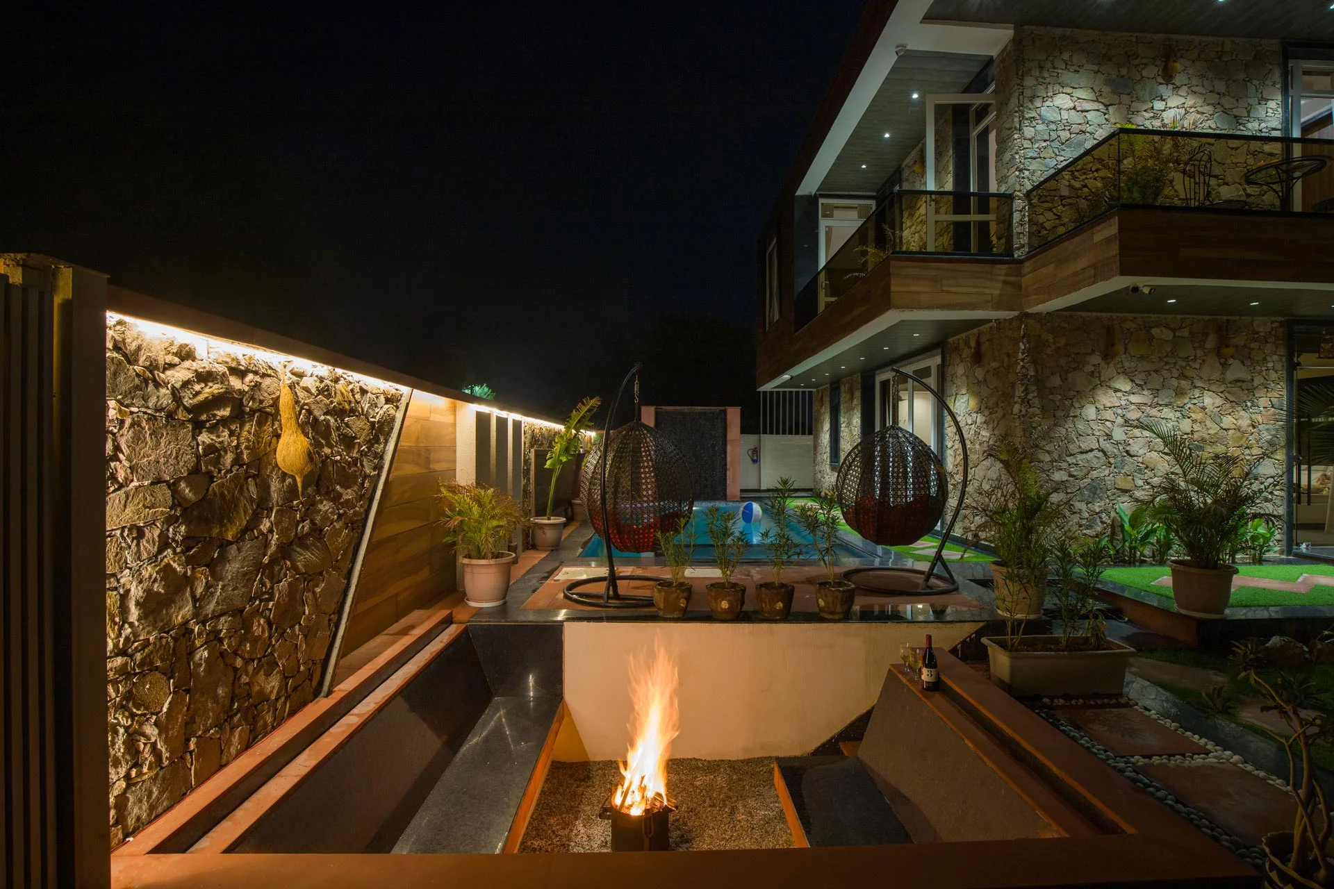 Visitors can relish a year-round outdoor swimming pool, a terrace, and a garden. The villa is equipped with an outdoor fireplace and a seating area, ideal for unwinding. The outdoor amenities of the villa are particularly enticing, showcasing a refreshing pool, an expansive lawn, a barbecue area perfect for preparing delicious meals, and a crackling bonfire pit, perfect for evenings under the stars. Besides providing a tranquil escape, VODRJ177 Villa enjoys a prime location close to Jaipur’s captivating tourist sites.