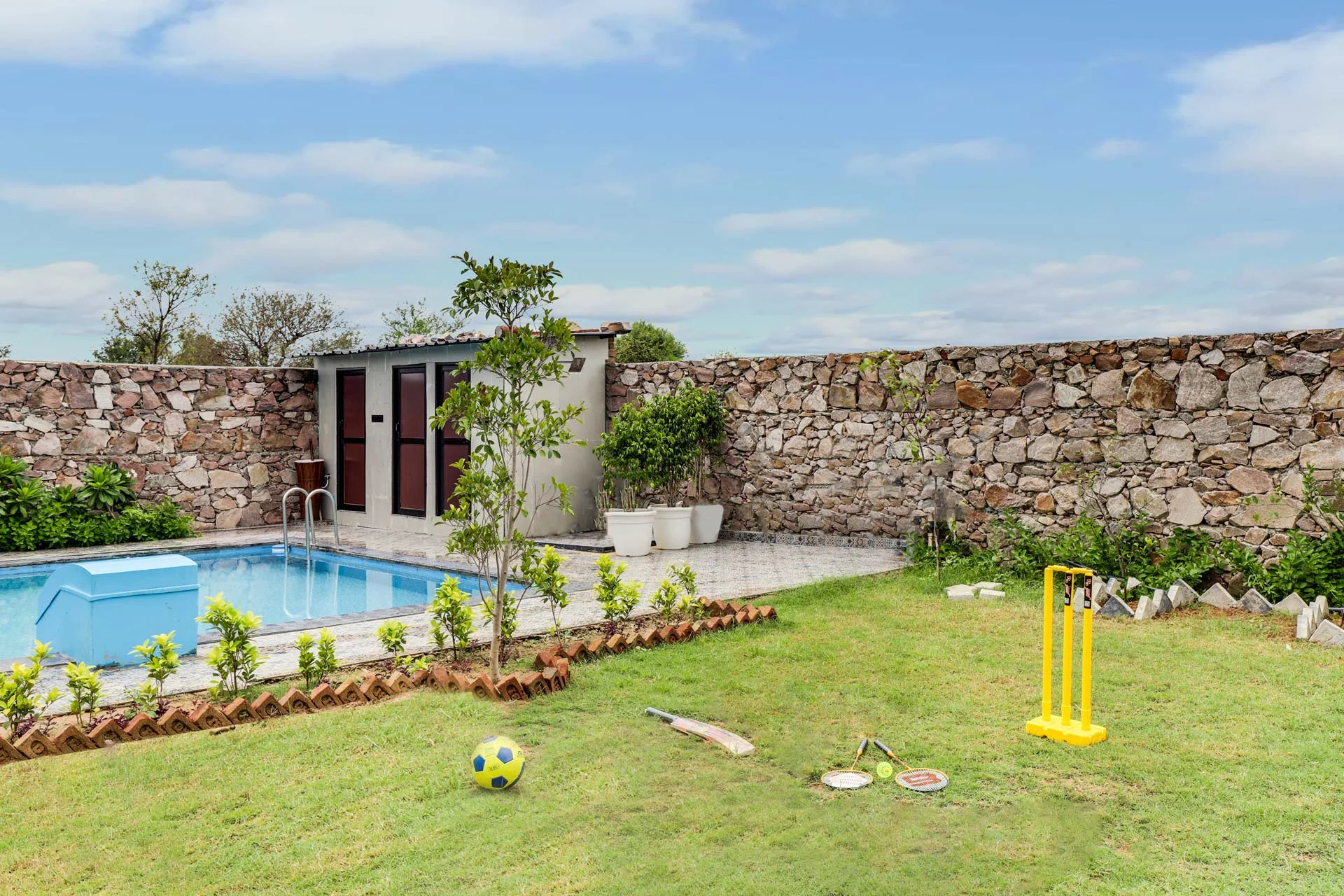 Guests can appreciate views of the garden and pool, all set within a tranquil atmosphere. Whether you prefer to gather around a warm bonfire beneath a starry sky, participate in energizing exercise sessions, or simply take a leisurely walk, this expansive lawn meets your needs. This Villa guarantees an unforgettable experience, where comfort, elegance, and natural beauty blend seamlessly. Situated 16 km from Jaipur International Airport, the farm stay is conveniently located near attractions such as Govind Dev Ji Temple at 23 km and City Palace at 28 km.