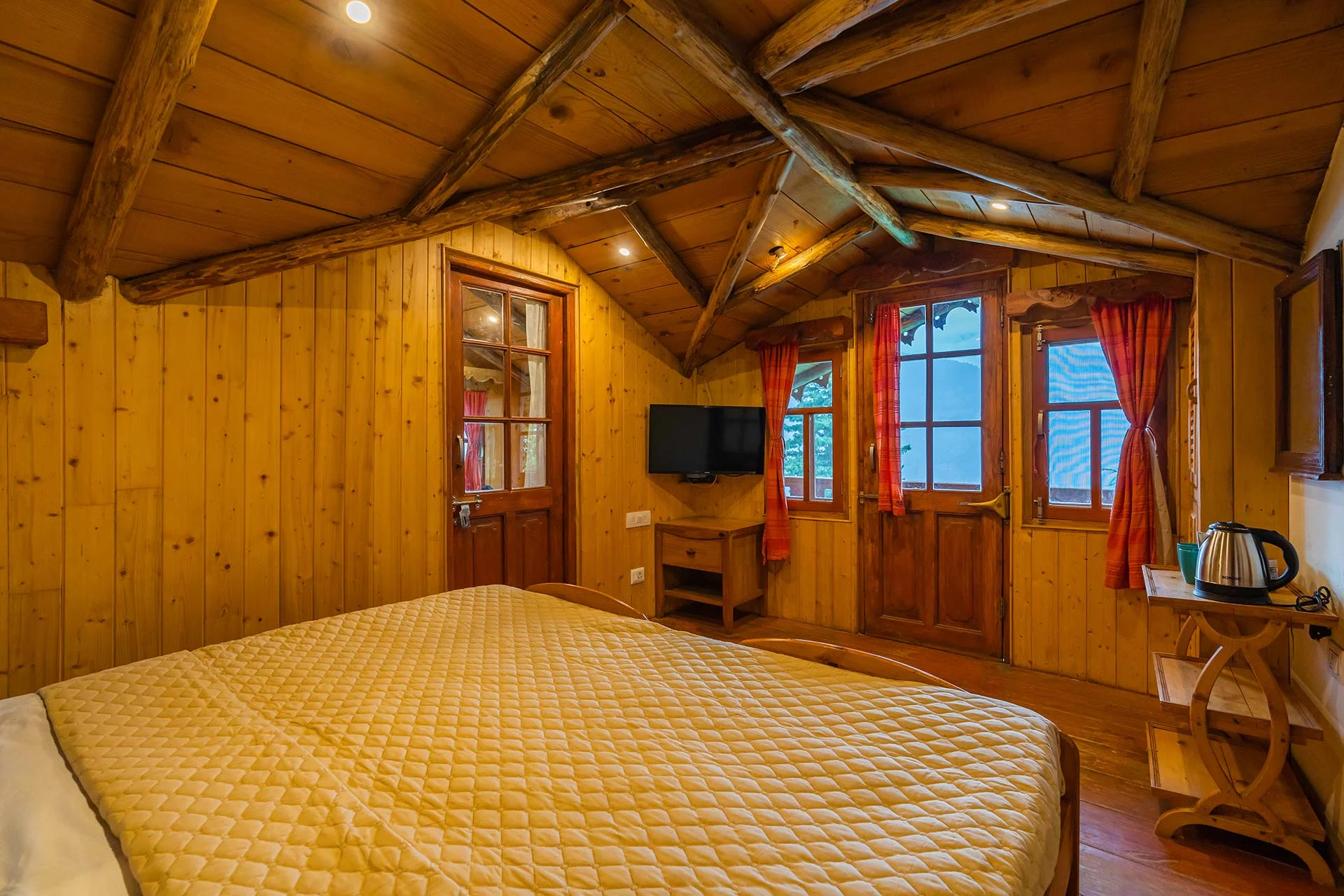 2 BR Mountain View Cottage In Manali Located in an extraordinary setting that is beyond words, this villa serves as a haven of unparalleled happiness. Tucked away within the expansive embrace of verdant hills and stunning views, VODHP39 Cottage is a remarkable getaway for individuals in search of peace within the magnificence of nature.