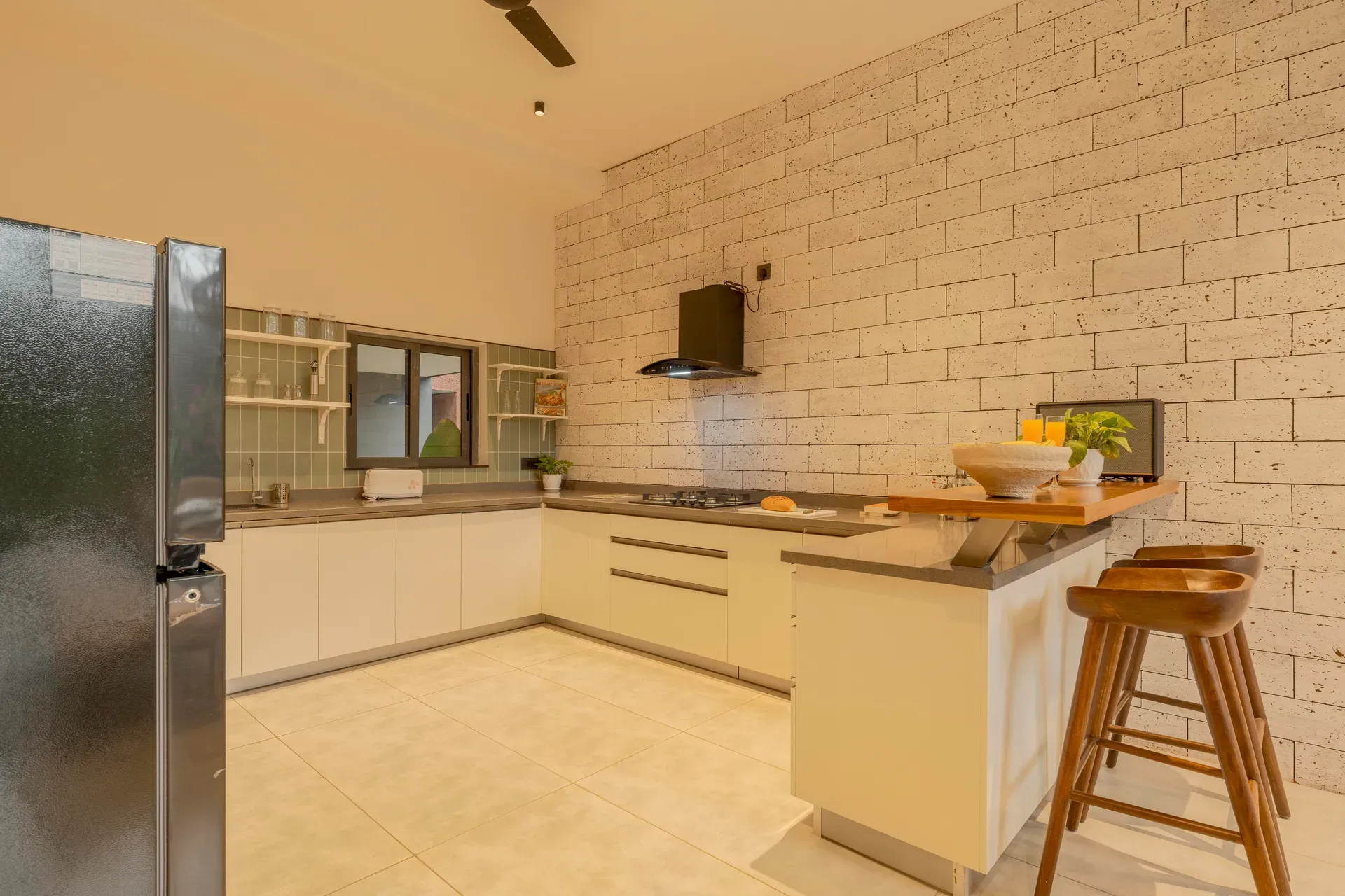 Exclusive 3 BHK Villa with Pool Welcome to an enchanting villa VODGA53 in Pilerne, boasting a private pool. Explore exquisite bedrooms, ensuite bathrooms, & a stylish living area with pool views. Whip up feasts in the open kitchen and gather in the cosy dining area. Relax on the a jacuzzi or unwind in the lush garden perfect for BBQ and Hookah nights under the stars.