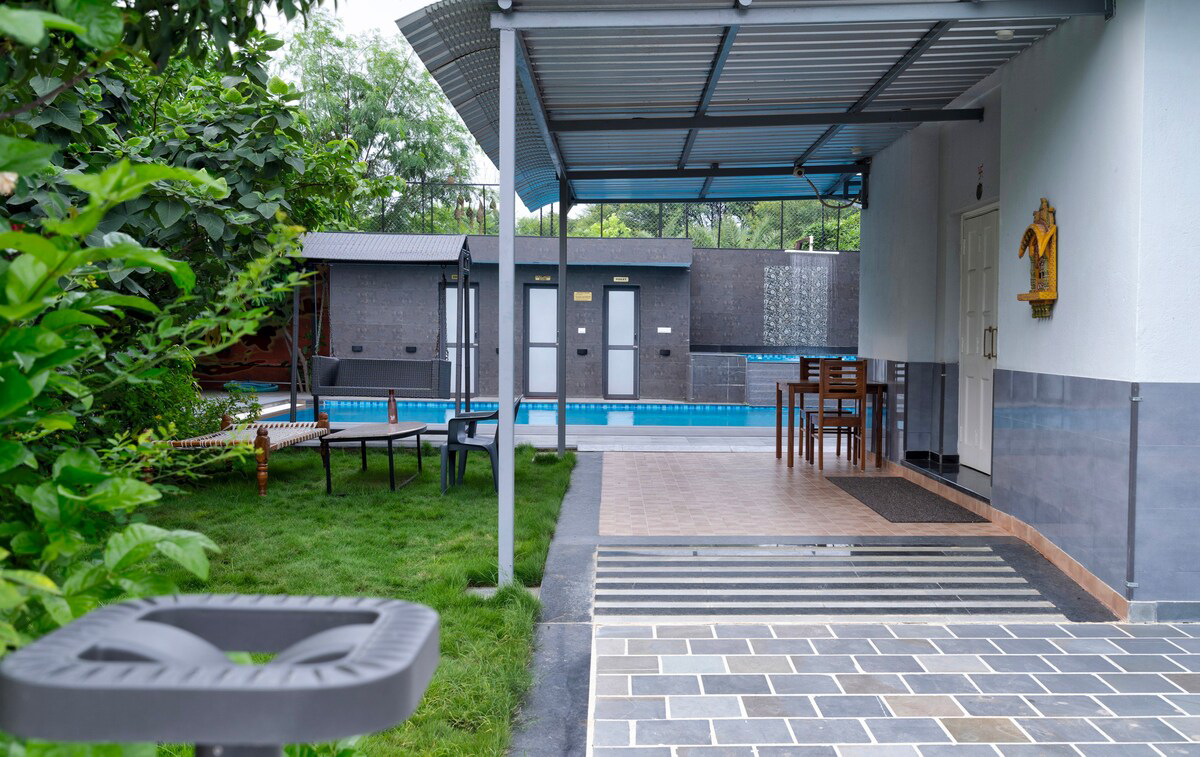 Elegant 3 Bedroom Pool Villa Welcome to VODRJ72 villa. The perfect retreat from modern life. Get back to nature with fresh air walks, lush green gardens. The villa is located 10 kms away from city center and 1.5 kms away from Lake Badi. Unwind in the grand living space, take a dip in the pool and enjoy the gardens and view with fresh fruits from our own in house plantation.