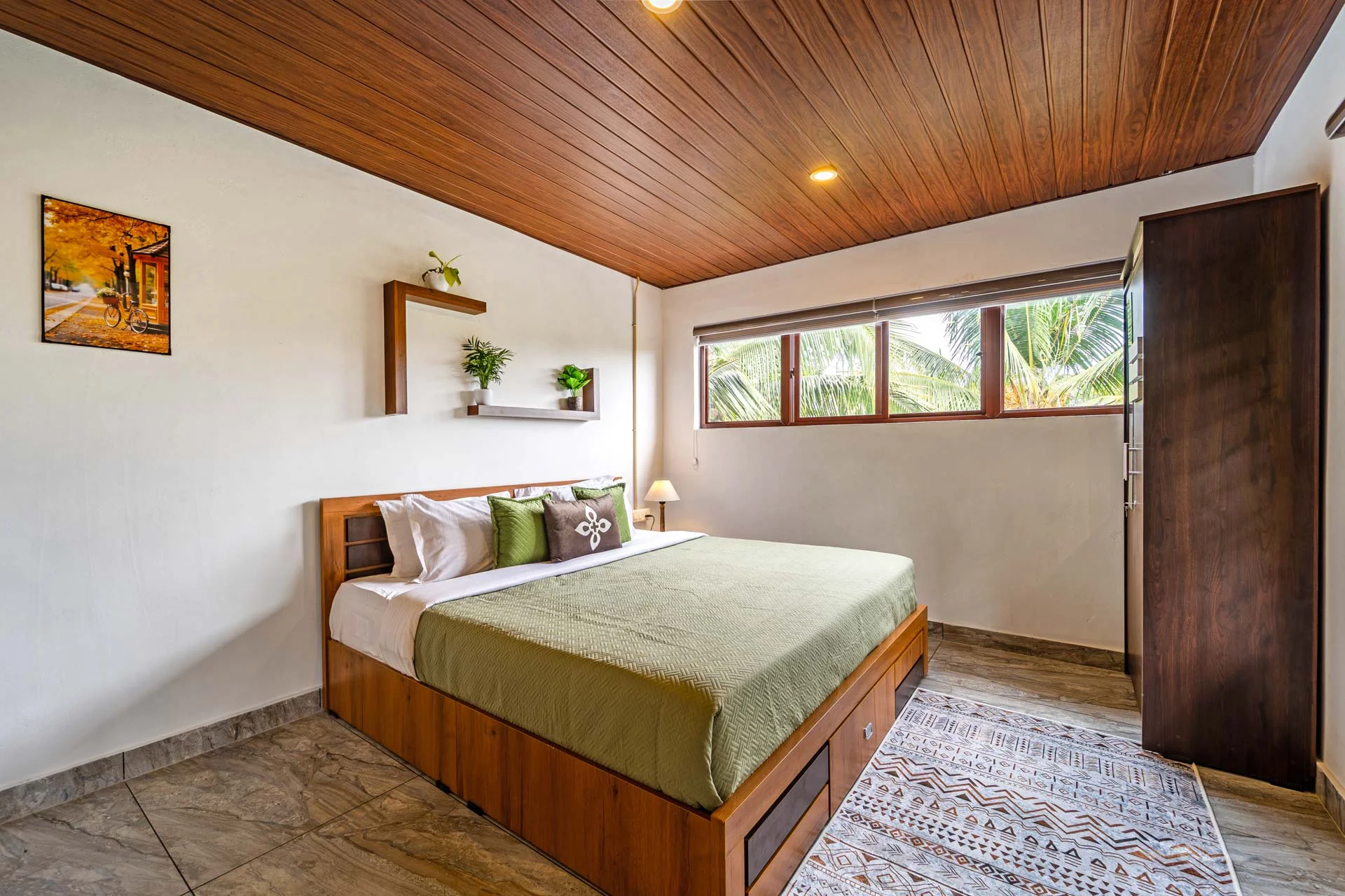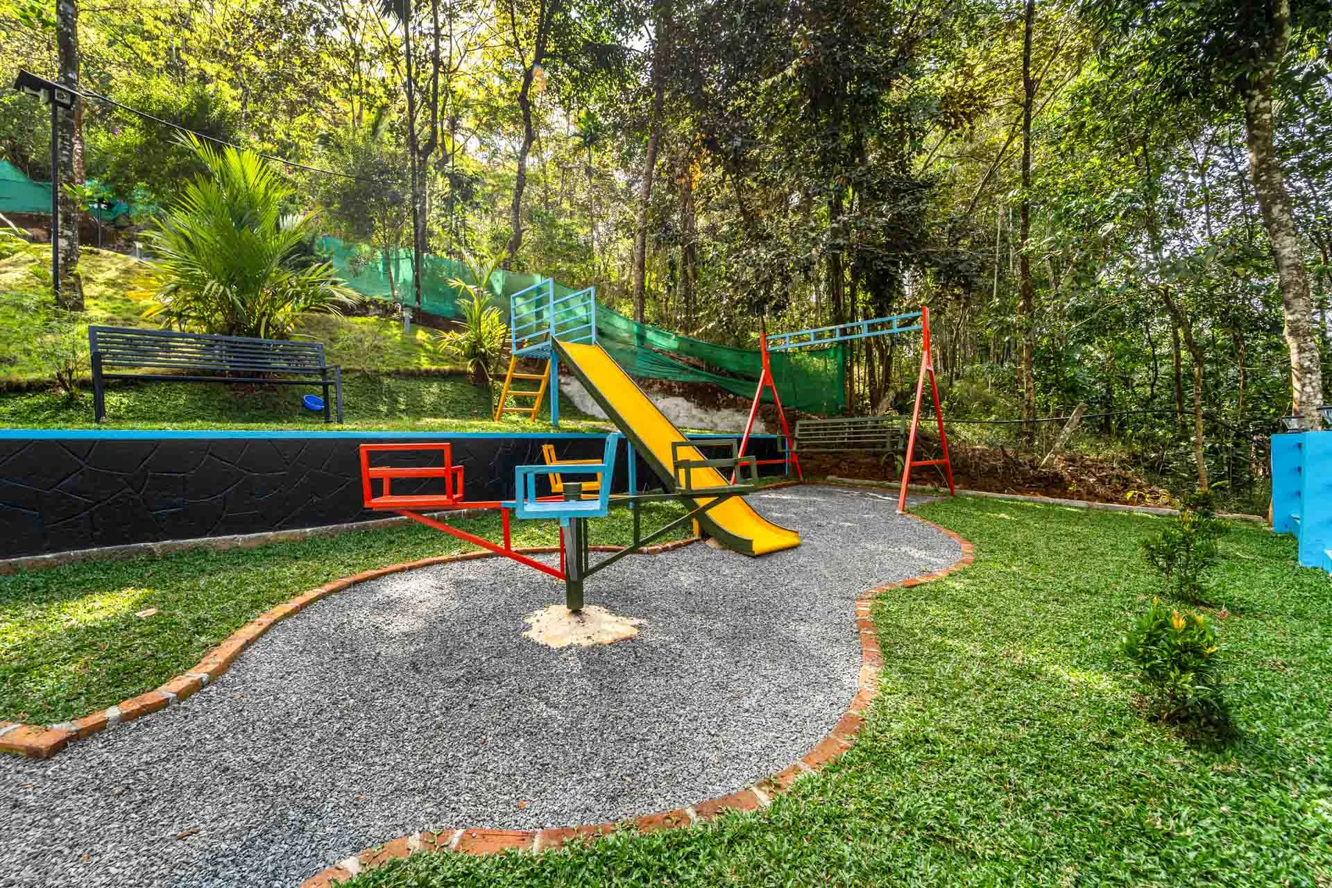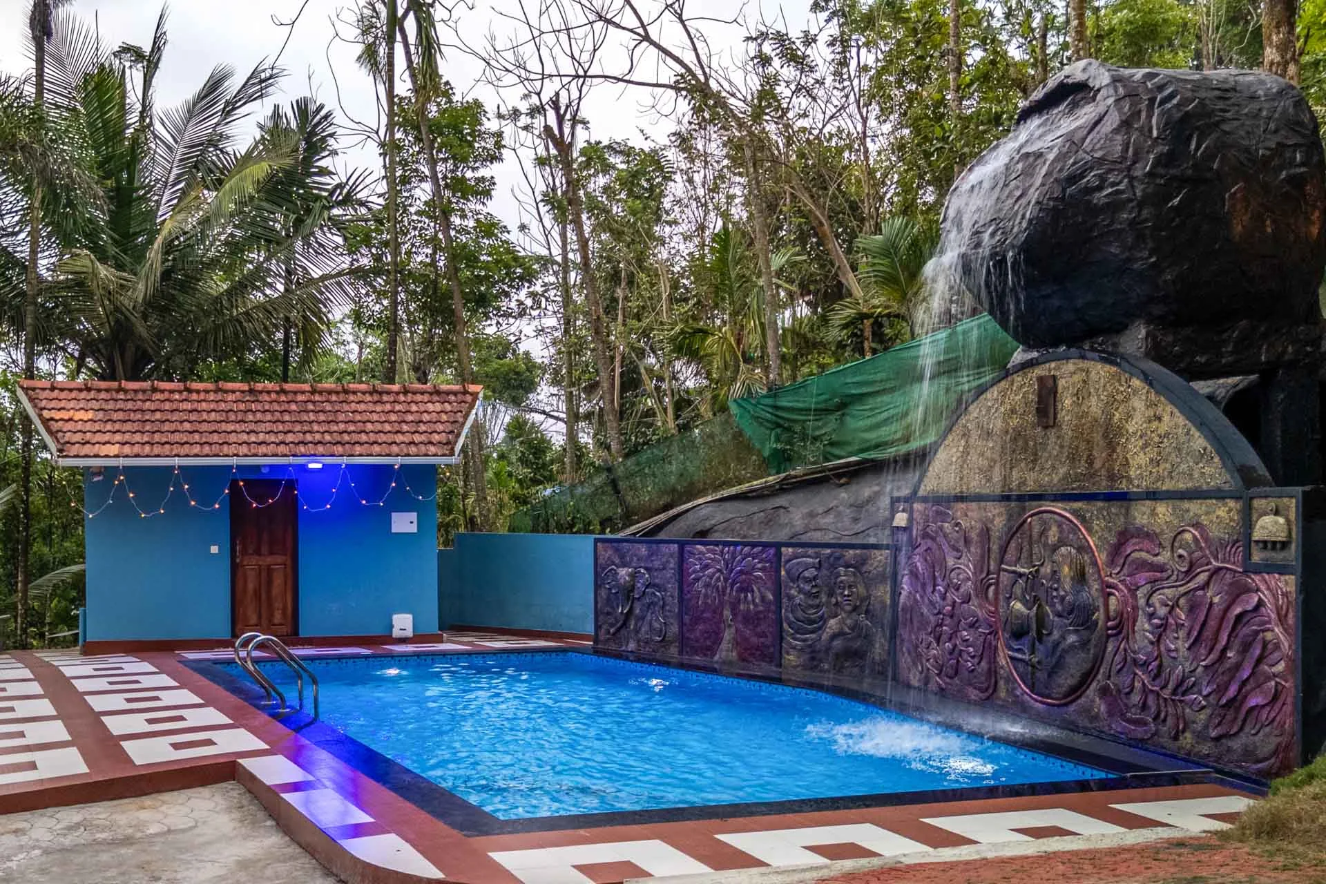 3 Bedroom Private Pool Villa In Wayanad VODSI34 is a delightful standalone villa nestled in a tranquil area close to Kalpetta, Wayanad, making it an ideal choice for relaxing family getaways. Its spacious and thoughtfully crafted interiors foster a warm and inviting ambiance, while the open-air areas encourage you to take a moment to unwind. The centerpiece is a sparkling outdoor swimming pool, which is enhanced by a children’s play area, board games, and a karaoke setup for enjoyable entertainment.