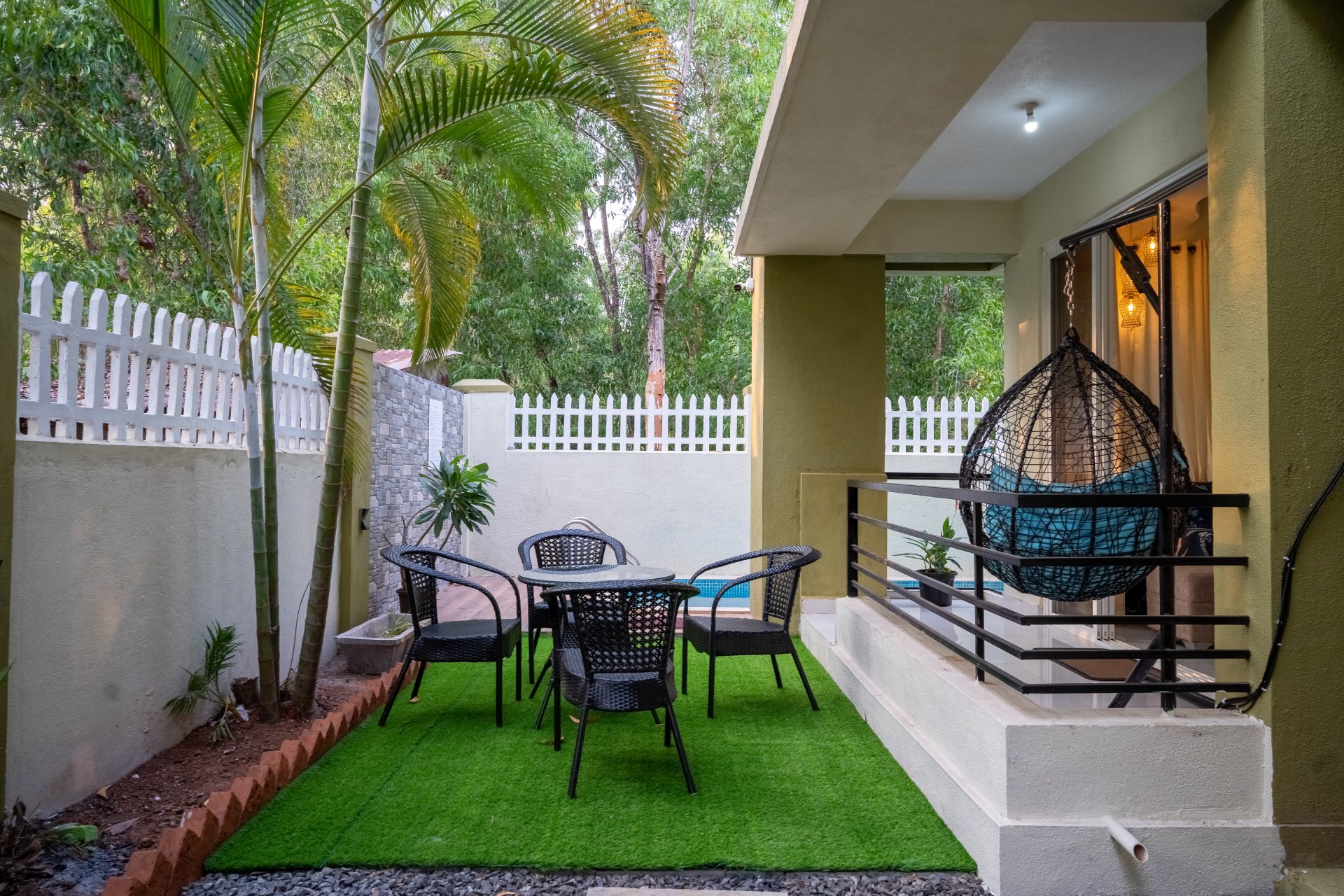 3 Bedroom Pvt Pool Villa In Goa This recently constructed villa serves as a retreat for family and friends. It is a place designed for individuals to rejuvenate their spirits and minds. Upon arrival, take a moment to inhale deeply and appreciate the clean air and natural surroundings. It truly offers an ideal sanctuary!