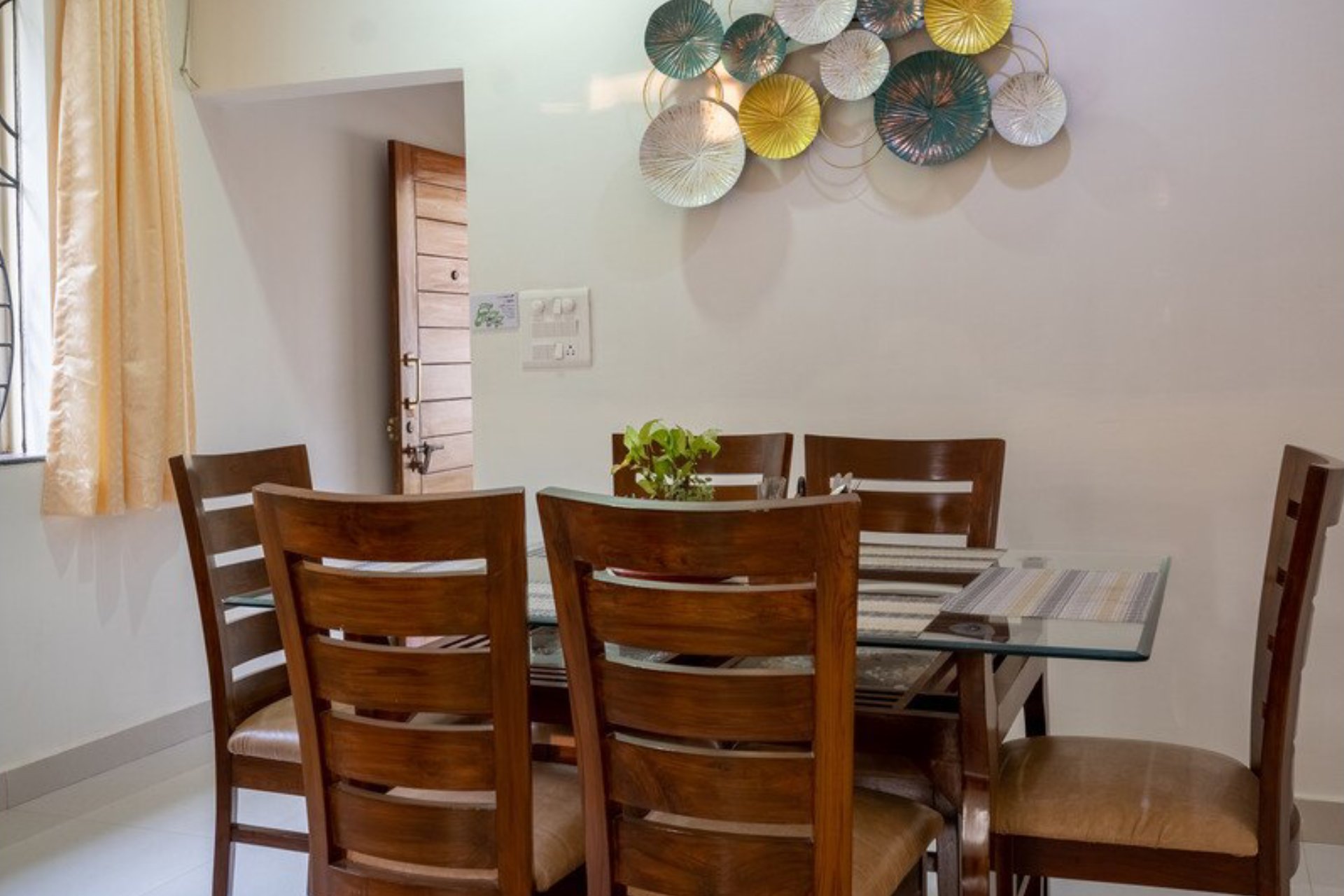 Are you in search of an opulent private villa in Goa that includes a private pool? Your search ends here! This fully air-conditioned 3-bedroom villa, situated in the vibrant heart of Goa, guarantees exceptional privacy and comfort, making it an ideal option for families or groups of friends. The villa is equipped with a contemporary kitchen featuring essential appliances, a flat-screen TV with access to Netflix and Prime Video, high-speed Wi-Fi, and a washing machine, ensuring a pleasant and entertaining experience for all guests.