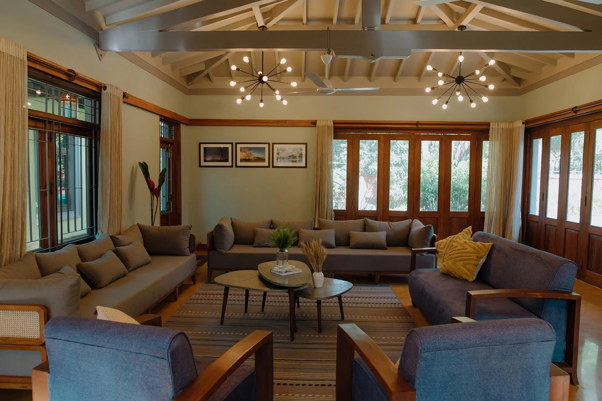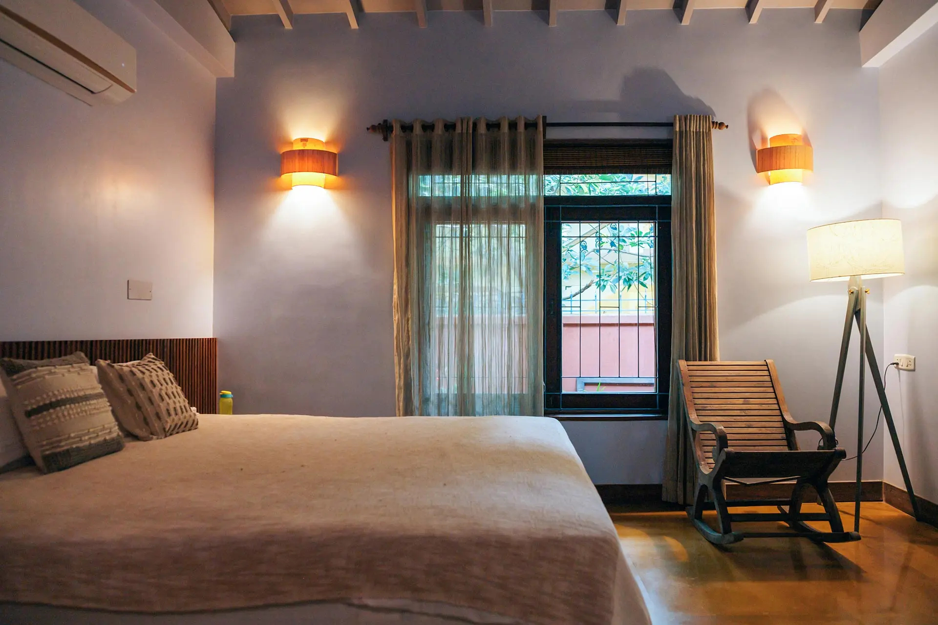 VODGA32 villa is a luxurious 3 bedroom property located in the serene village of Cansaulim, South Goa. This villa combines modern Goa aesthetics with Portuguese architectural charm. It features lush greenery, a private pool, and spacious interiors designed for comfort and relaxation. The villa can accommodate up to 9 guests, making it ideal for family getaways or intimate gatherings. Step inside, and a refined elegance greets you, adorned with tasteful, modern furnishings that exude comfort and style.