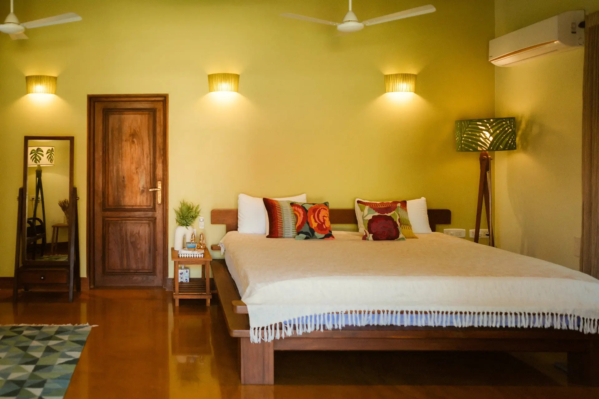 The villa is situated near key attractions like Cansaulim Beach and offers easy access to local dining options such as Mama Miso and Spice Studio. The lush green lawn encircling the pool boasts a breathtaking assortment of lemon grass, mango, coconut, and avocado trees, transforming the grounds into an Eden like haven waiting to be explored and relished.