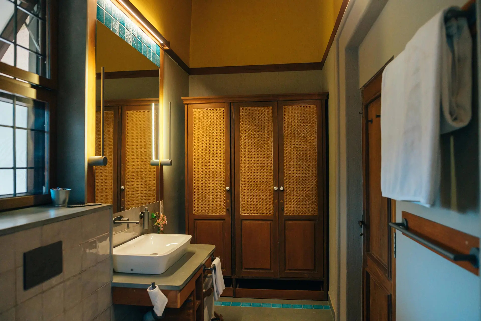 The true wonder of VODGA32 villa lies outdoors. The shimmering pool, the heart of this paradise, is graced by a wooden walk over bridge, inviting you to immerse yourself in the dreamlike setting. Picture yourself lounging by the water’s edge, savouring a refreshing drink while feasting your eyes on the picturesque views. Amenities include free WiFi, private parking, and a fully functional kitchen. Meal packages with local specialties are available, and pets are welcome with prior approval.