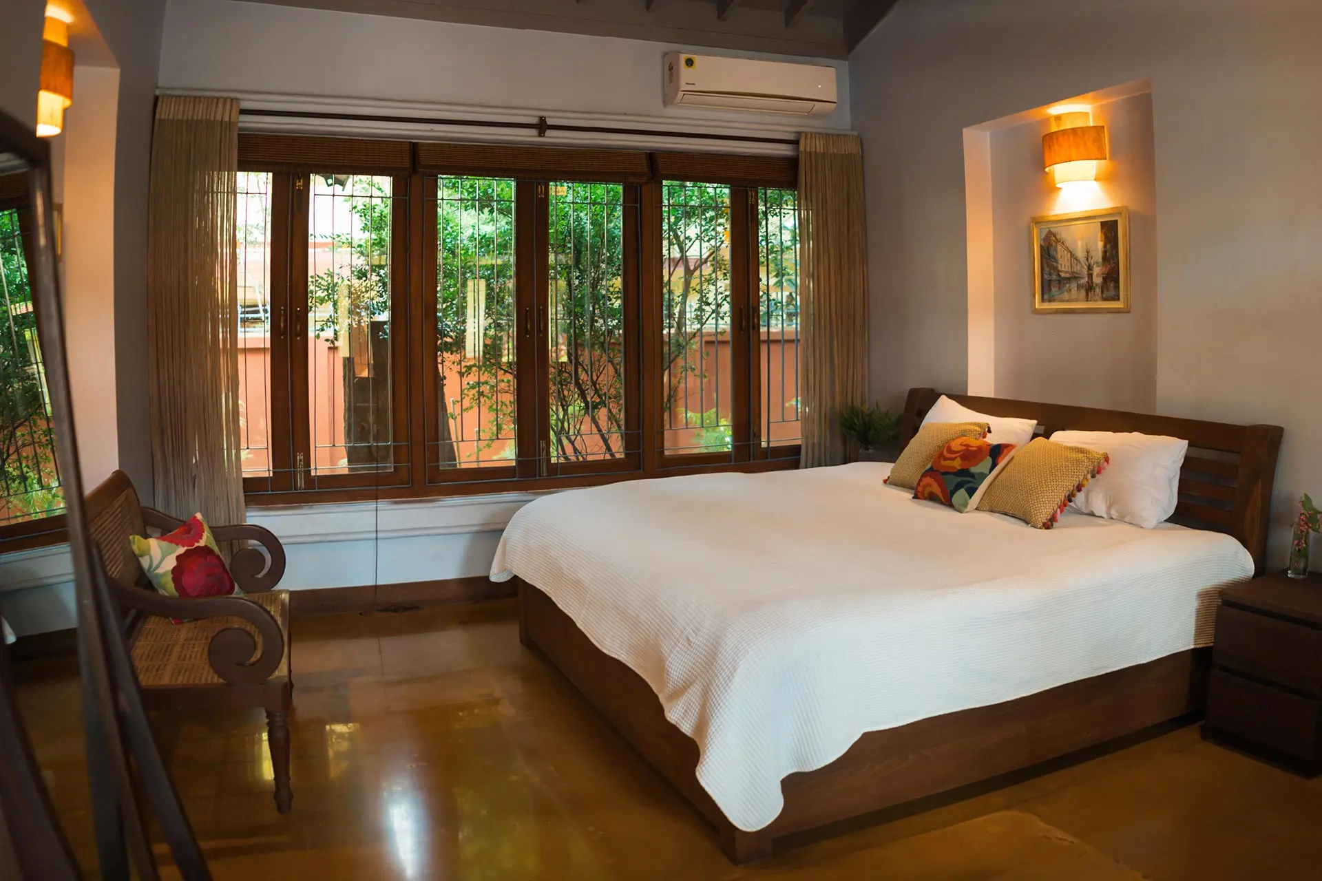 Charming 3 Bedroom Portuguese Villa Nestled in a prime location near Cansulim, lies a serene oasis, VODGA32 where your beach days take on a magical allure. This Goan Portugal home enchants you from the moment you arrive, wrapped in an embrace of boundless greenery and the intoxicating scent of blossoming flowers. A harmonious blend of traditional Portuguese charm and contemporary luxury welcomes you, promising an unforgettable stay.