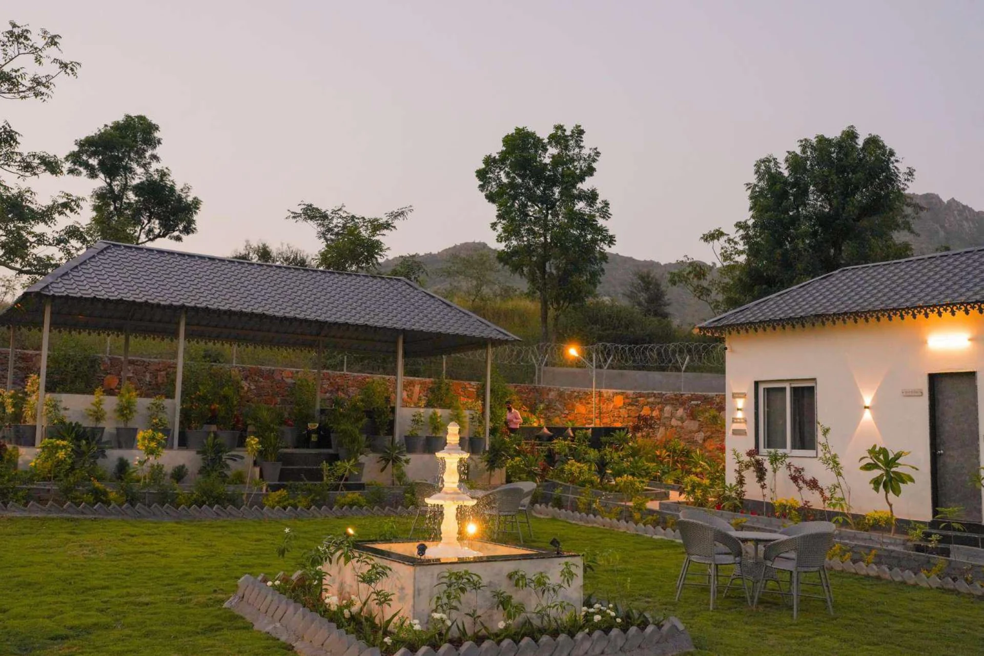 3 Bedroom Villa With Lawn A stunning villa combined with a homestay, situated in the heart of the Aravali mountains in Udaipur, serves as an ideal location for spending quality time with family or friends. The attention to care and comfort provided at our property is highly personalized.