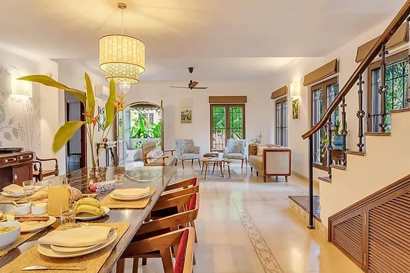 The mesmerising interiors and bright clean environment lets you chase your dreams in peace. The bright and airy rooms with maximum daylight lets you spend your day in peace. VODGA08 villa in Goa has a common living room, with large screen televisions, comfortable & trendy furniture’s, music system, air cons and more. The best spot in the villa to sit and relax read your favorite book or watch your favorite show on TV.