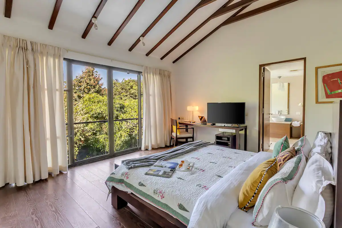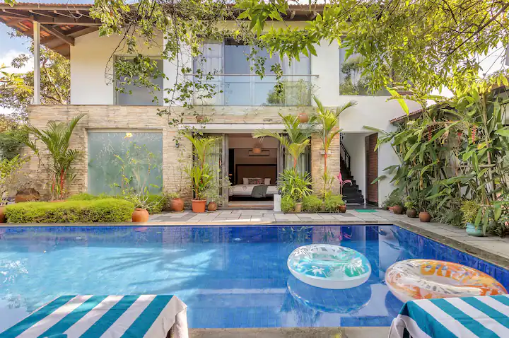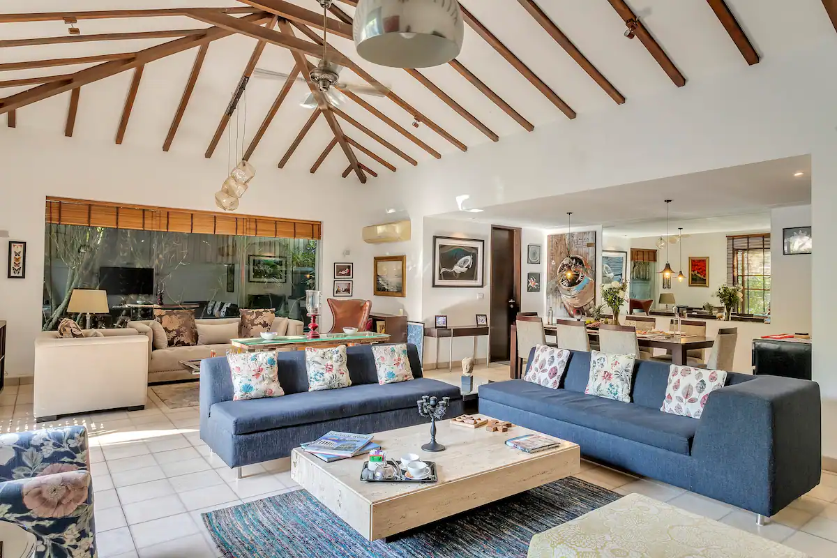 VODGA12 villa is conveniently located near the Mopa International Airport, which is only 22.50 km away, and the Goa International Airport, which is 38.20 km away. The famous Calangute Beach is also just 5.60 km away from the villa. The villa’s location is perfect for those who want to enjoy the beauty of Goa while staying in a luxurious and comfortable villa. The villa’s caretaker ensures that guests have a hassle free stay and can enjoy all the facilities provided. The private swimming pool is perfect for a refreshing dip after a long day of exploring Goa’s attractions.