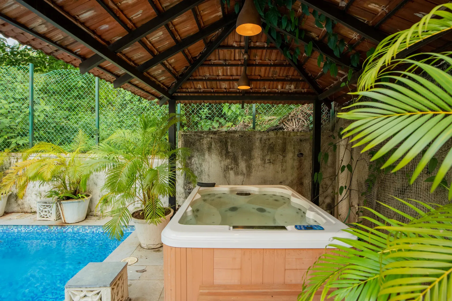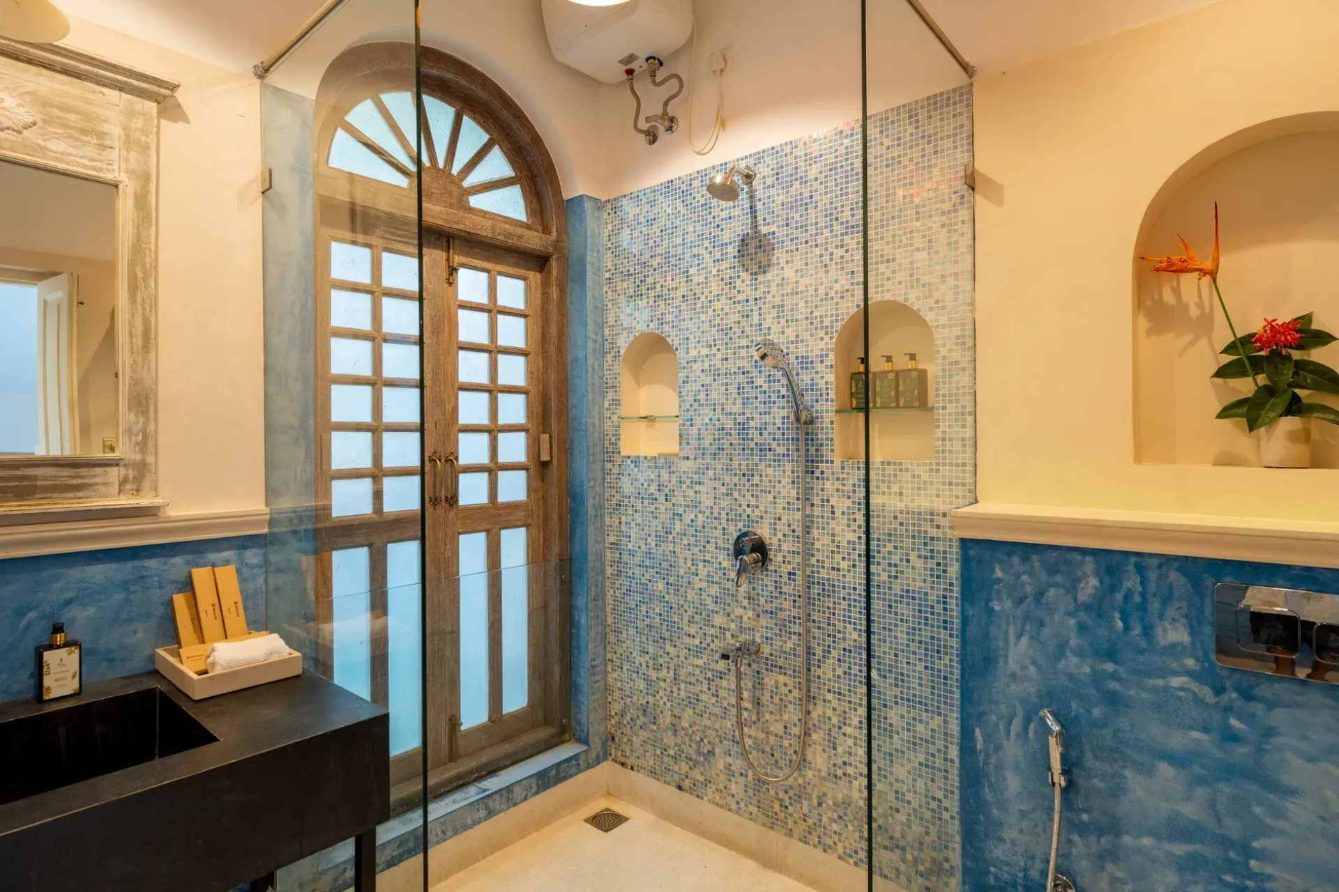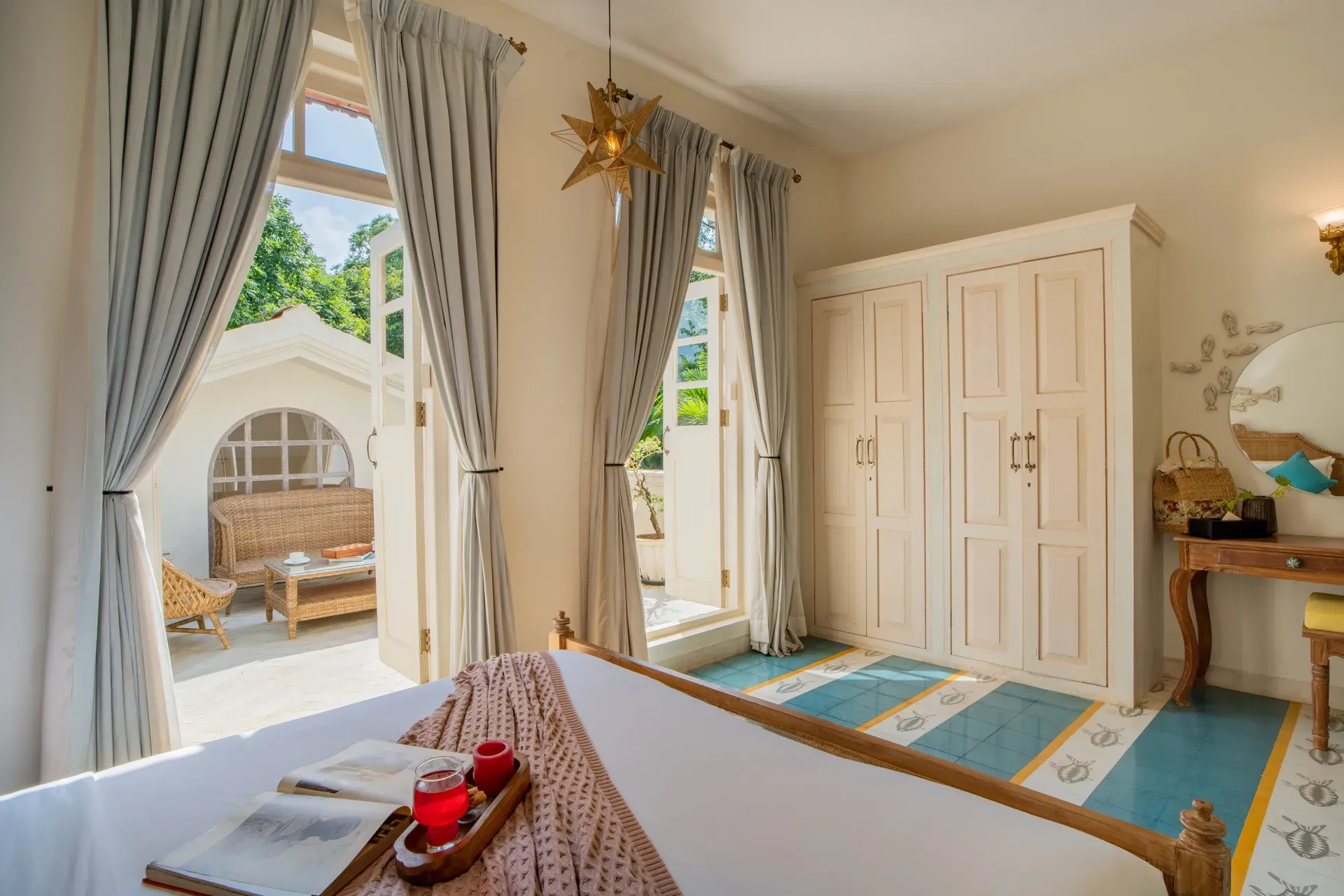 The spacious villa features three bedrooms, three bathrooms, and a balcony with pool views. Guests can enjoy a private entrance, where they can relax with a glass of wine or champagne and some fresh fruits. The villa is a non smoking accommodation. During their stay, guests can indulge in the villa’s Jacuzzi or venture out to experience Goa’s vibrant nightlife, just a 10 minute drive away. Splashdown Waterpark is also within a 10 minute drive.