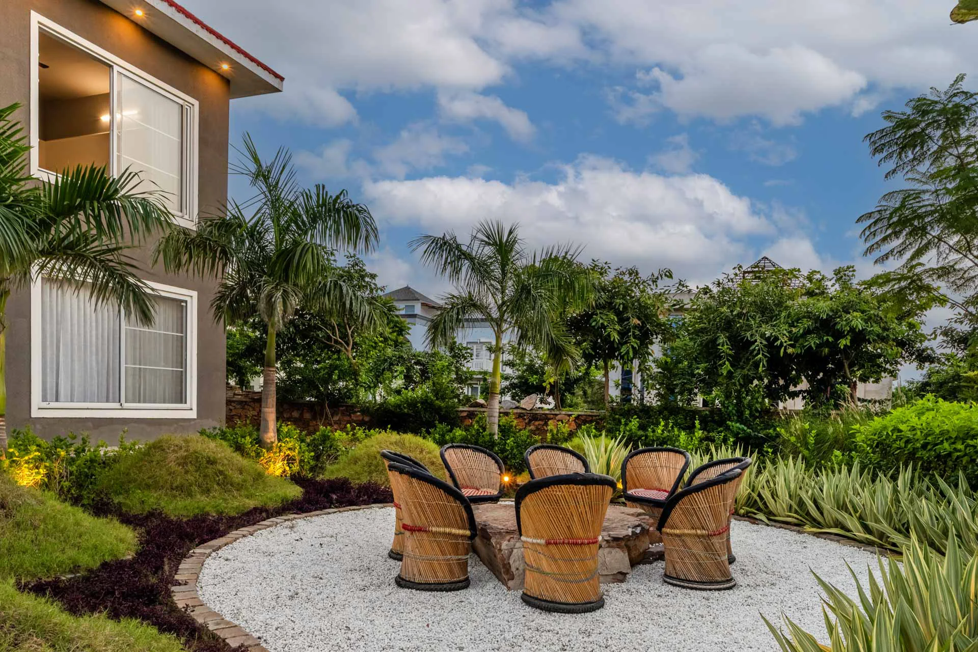 VODRJ198 Villa features 3 sophisticated bedrooms that can accommodate up to 9 guests, making it an ideal retreat for families and friends who appreciate luxurious and enjoyable getaways. Step outside, and you will find two beautifully landscaped lawns that elegantly surround the villa, perfect for leisurely afternoon teas, dinners under the stars, or celebrations that warrant a royal ambiance.