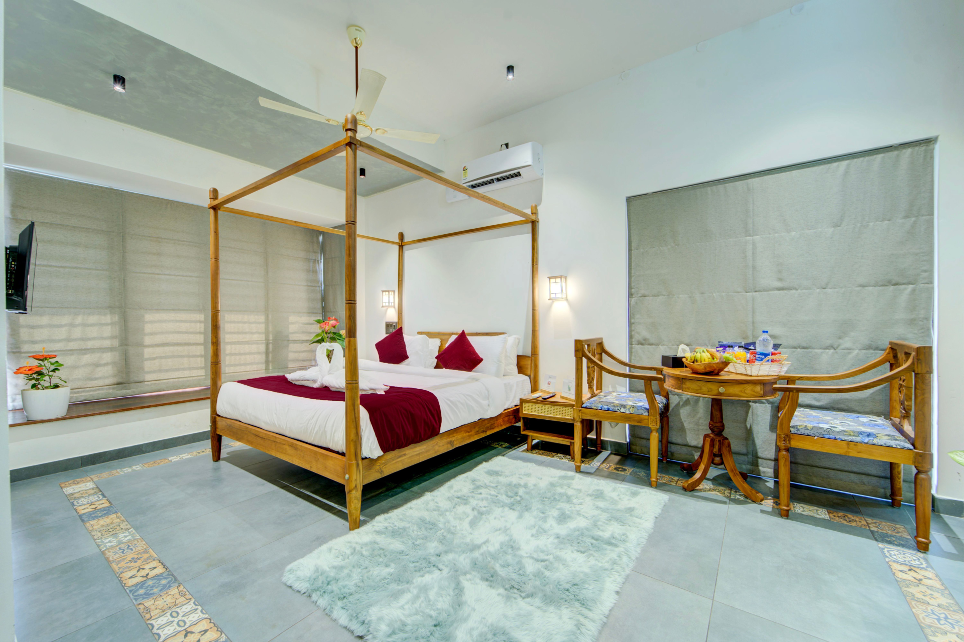 Queen-sized beds, warm lamps, and elegant, minimalistic dΓ©cor create a serene atmosphere, making mornings feel leisurely and gentle, as if time itself decelerates, allowing you to breathe, reset, and commence the day with quiet intention. At the rear, an even larger patio opens entirely to the boundless countryside. Elegant cast-iron benches, patterned pavers, vibrant red-cushioned pod swings, and a tranquil Buddha statue beside a gently flowing water feature invite pure, uninterrupted stillness and deep reflection. You arrive seeking rest and depart with a tranquility that lingers long after the fields have faded from view. The resort is located 94 km from Cochin International Airport, nestled in Champakulam.We recently spent a magical few days at luxury Villa in Udaipur booked through Villas On Demand and the entire experience was so amazing. Every detail of our stay was Carefully planned, making this trip an unforgettable one for all of us.
