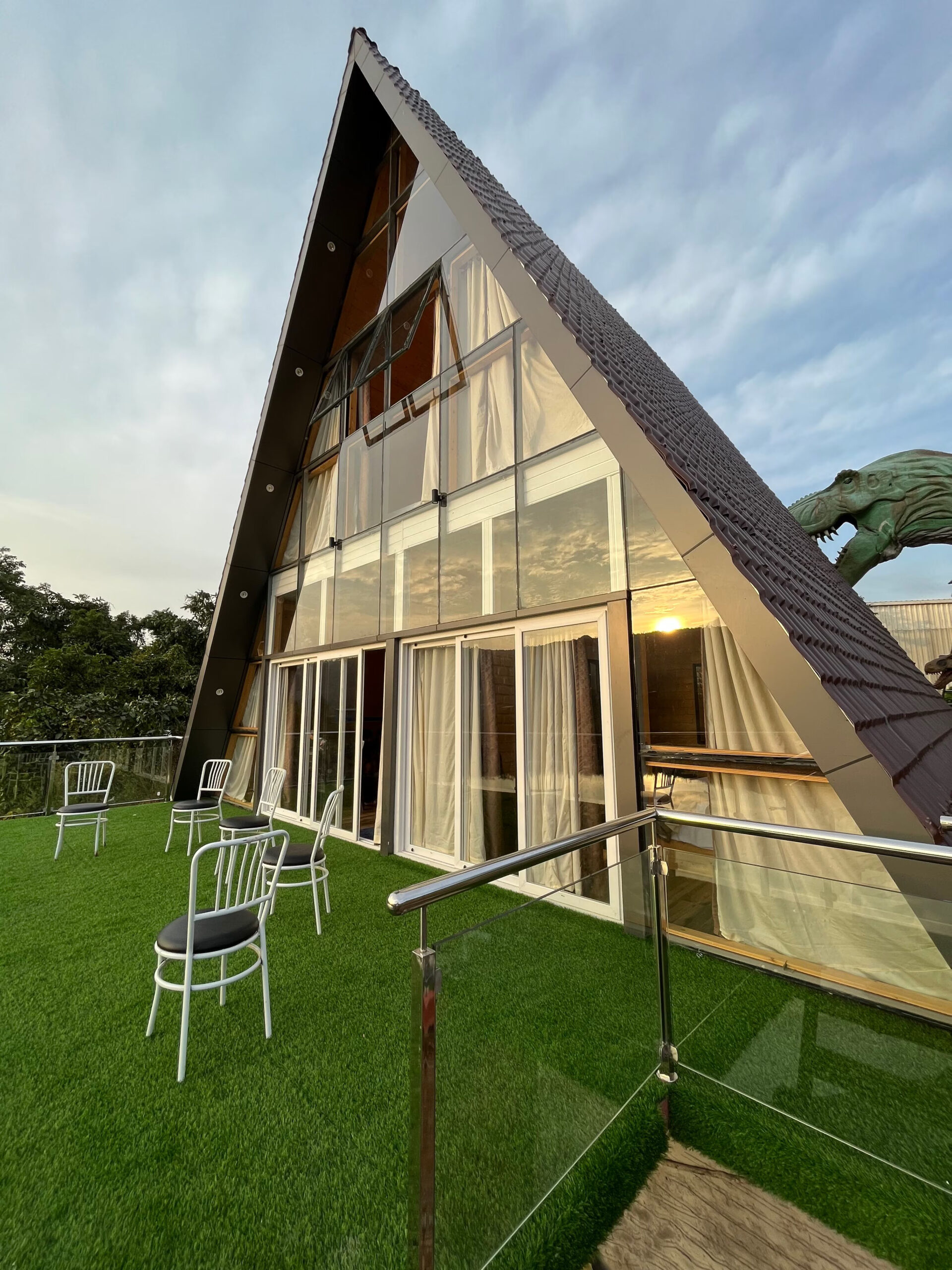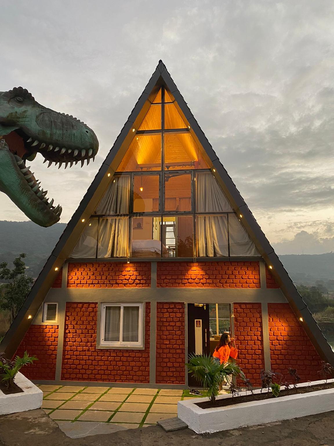 VODMH56 Villa has 3 bedrooms and a terrace where you can use the respective area. Highly recommended to have a relaxing time with your family. The VODMH56 Villa in Lonavala located within in Aundholi, Maharashtra, offers a unique and playful accommodation experience. This 3BHK triangular-shaped villa is designed for families or groups, comfortably hosting 6-8 people.
