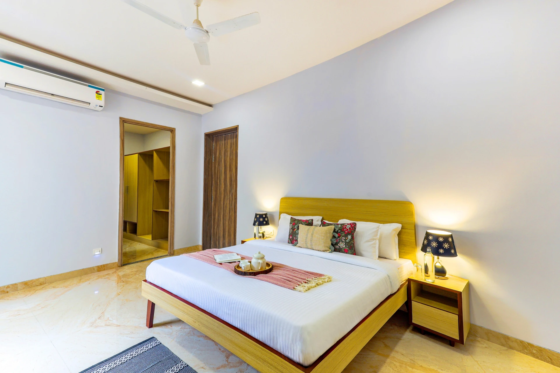 VODRJ164 Villa Luxury 3BHK Stay in Jaipur provides a homestay experience featuring a private bathroom. Each room is equipped with air-conditioning, a television, and a dining area. Situated in Jaipur, this delightful 3-BHK pet-friendly villa serves as an ideal retreat for both friends and families! Guests benefit from complimentary WiFi, a tea and coffee maker, a refrigerator, free toiletries, a shower, slippers, an electric kettle, and kitchenware.