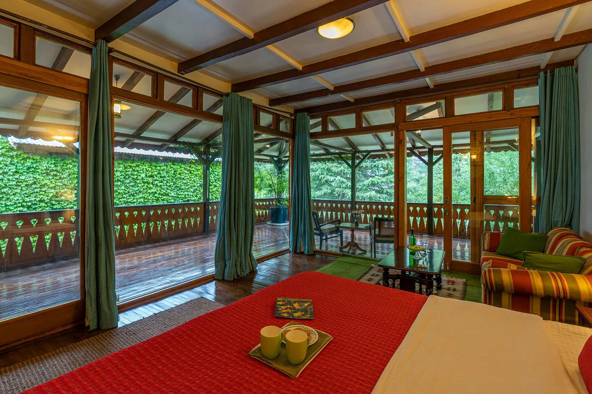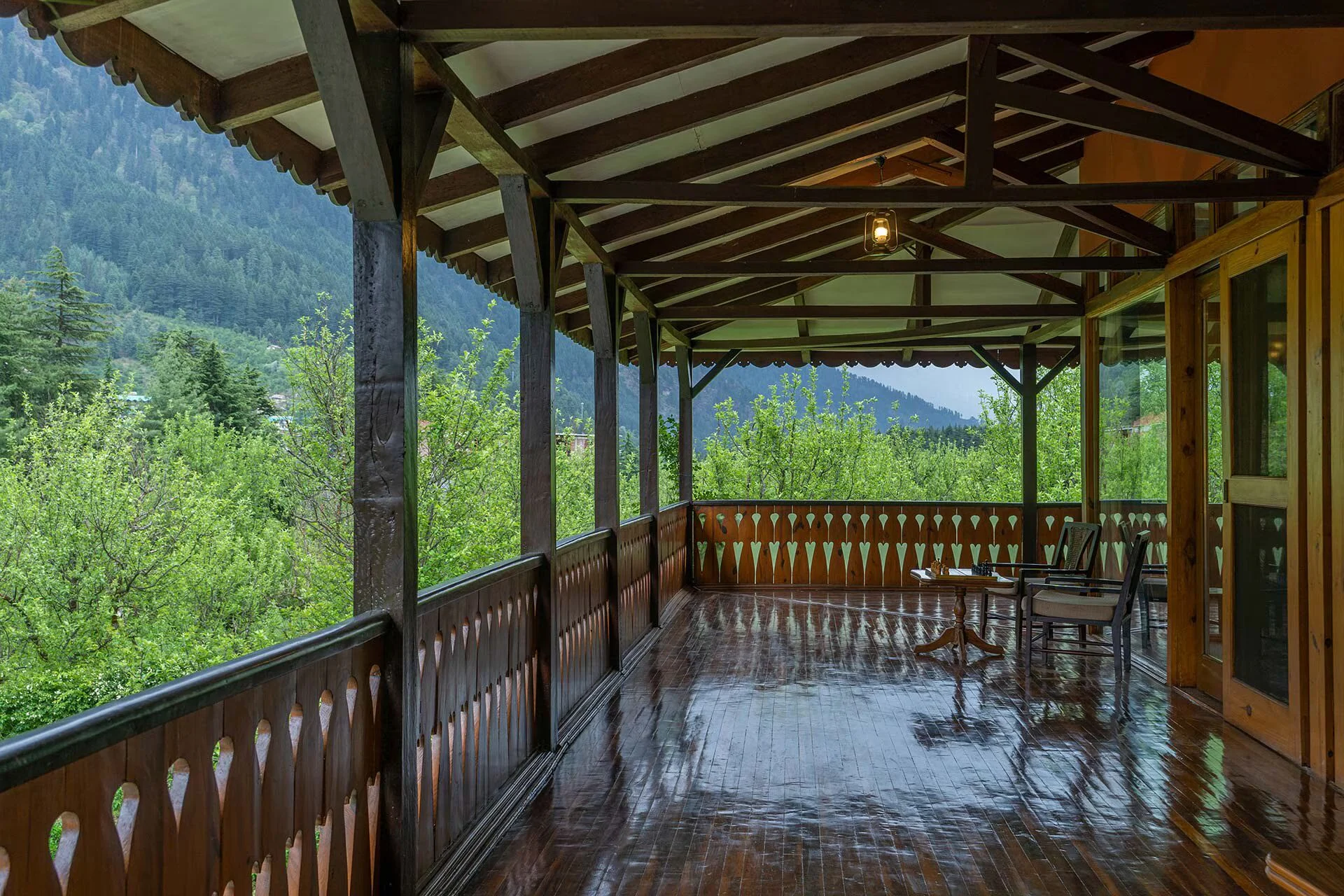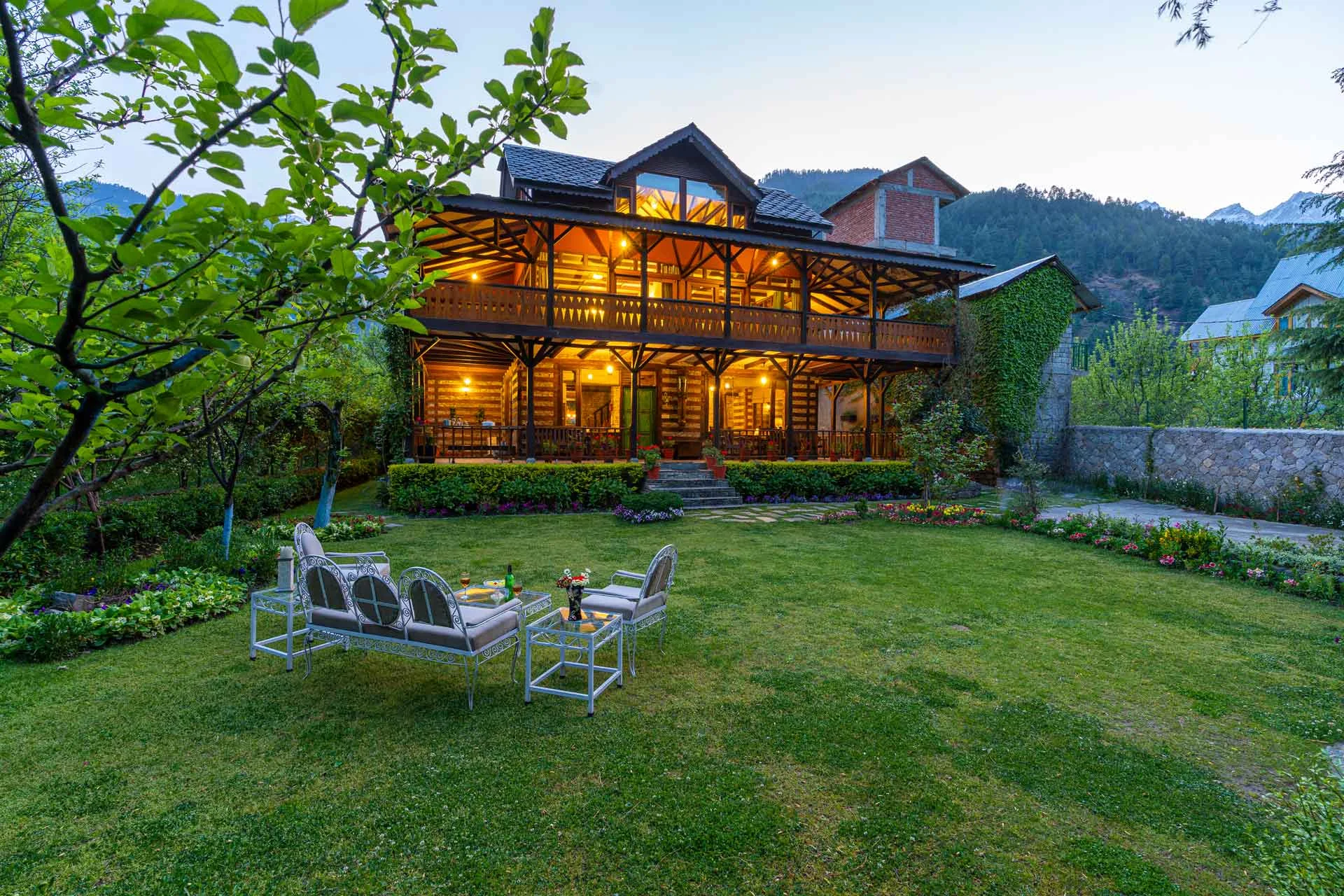 3 Bedroom Villa With Mountain View In Manali Situated amidst apple orchards and offering breathtaking views of the Himalayas, the villa commands a view of the Beas River. It pays tribute to the region’s traditional architectural style, while the interiors are equipped with all contemporary comforts.