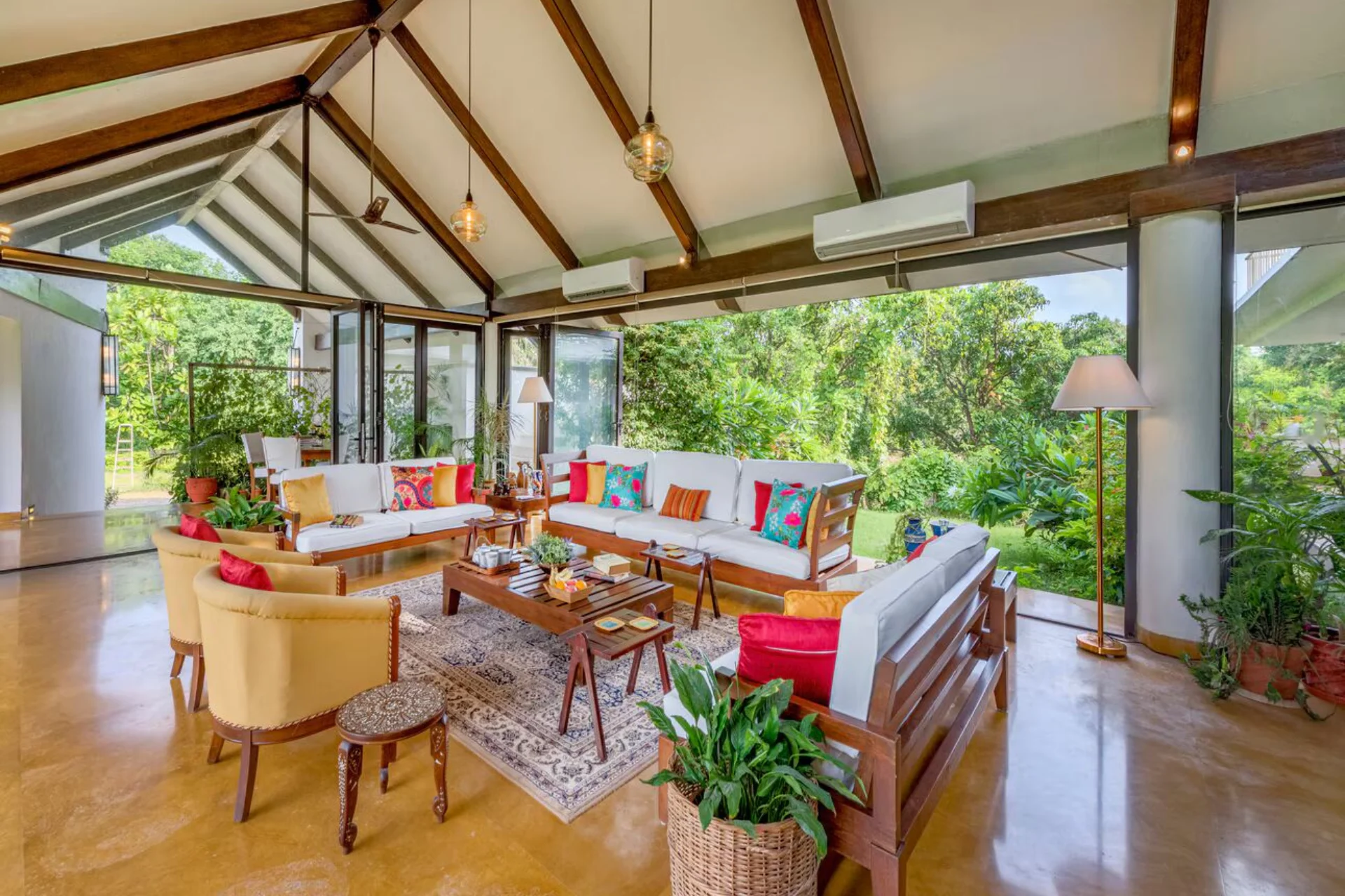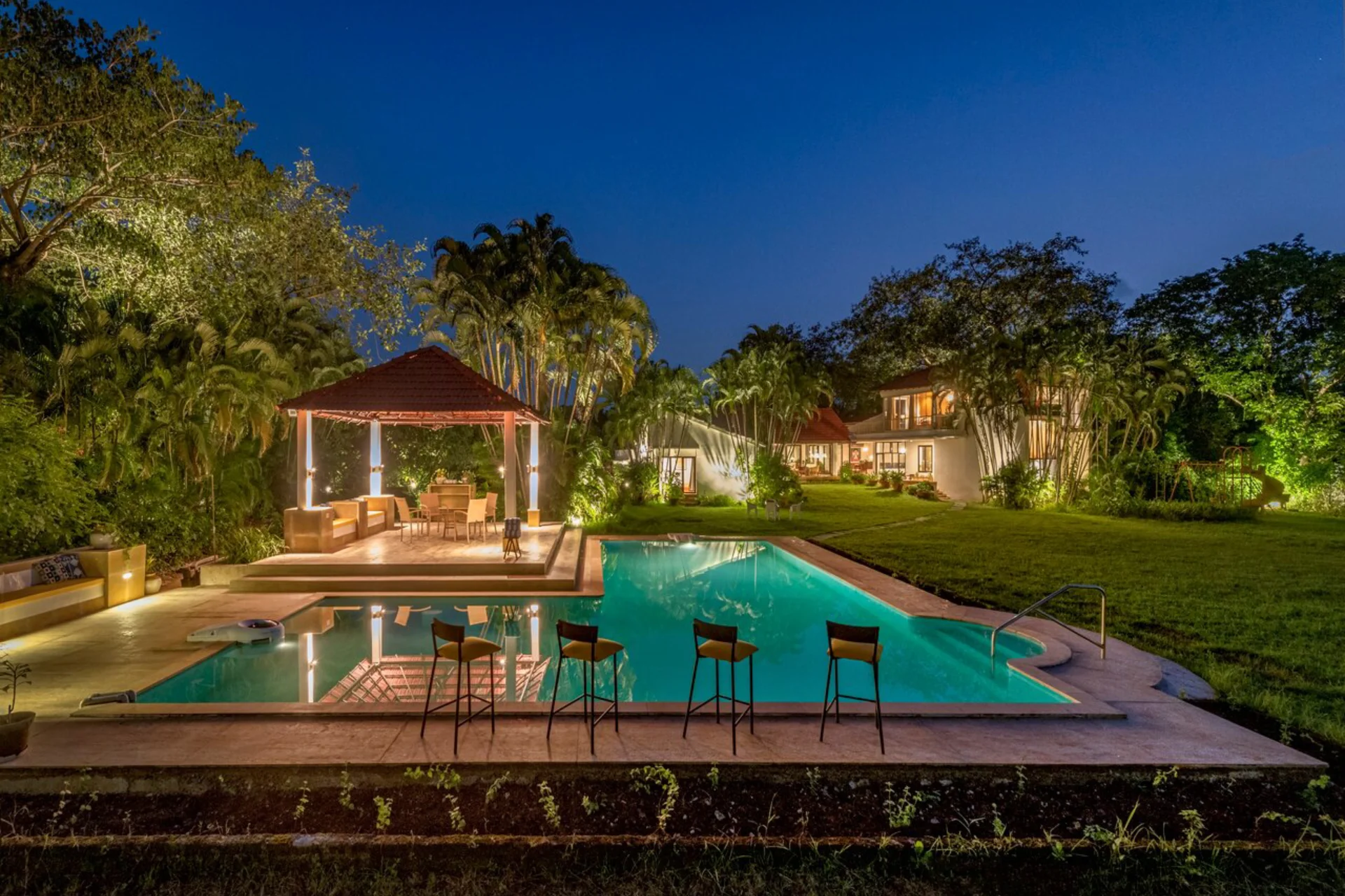4 Bedroom Gazebo Villa Experience the comforting embrace of nature combined with unparalleled luxury at this pool farm retreat in Alibaug. Enjoy orchard strolls, a children’s play area, delightful indoor-outdoor living spaces, a magnificent pool and a plethora of additional amenities.