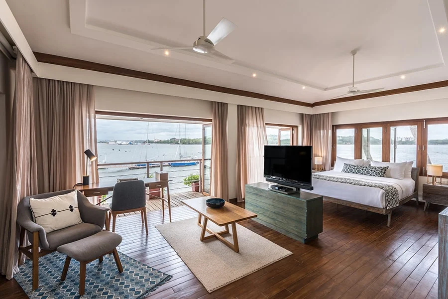 Situated in the sleepy village of Reis Magos in Bardez, VODGA24 Villa promises an idyllic holiday. Aptly named, the retreat offers spectacular views of a river as chirping birds form a background score. In true Goa style, the modern interiors of the villa are combined with a shack-like exterior, making this sanctuary ideal for guests looking to soak up some sun, go to a beach, rest on cabana chairs and unwind at their private infinity pool. Experience the quiet by the river at VODGA24 Villa. VODGA24 Villa is a luxurious holiday villa located in Goa, India.