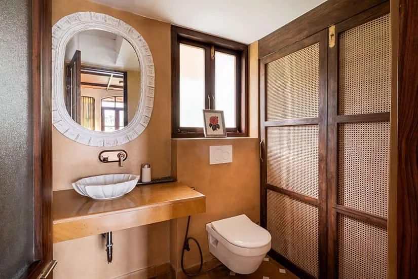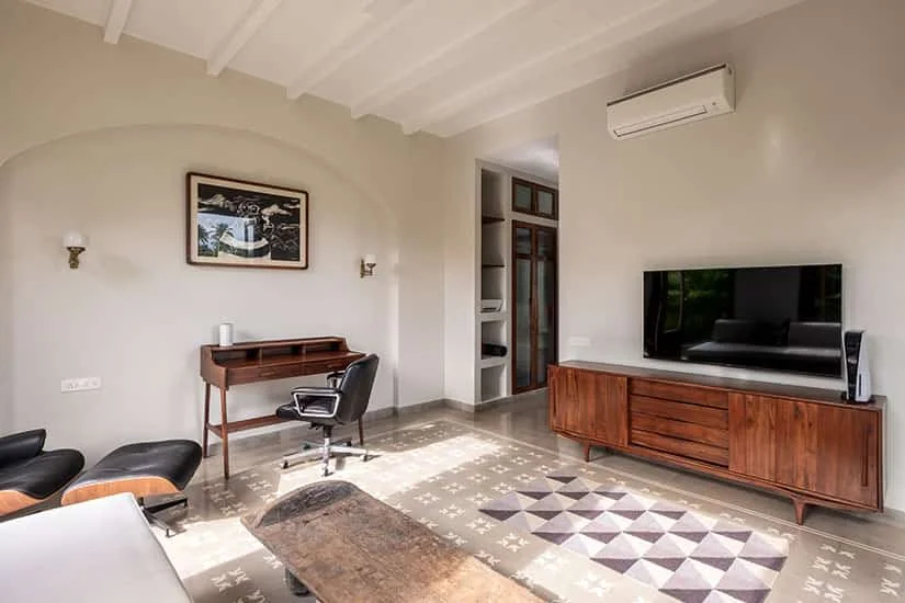The luxury VODGA11 villa in Goa has the private pool set on the first floor of the house along with the cabana. Enjoy Sunset parties, afternoon fun beating the Goan heat or simply have fun in the pool with your loved ones at the comfort of the private villa. The VODGA11 villa in Goa comes with a vast living space with comfy seats, television, exquisite wall decors and more – creating a flawless setting for socialising. The ground floor is home to the living room, dining space, kitchen and garden. The kitchen is fully equipped with cutlery, crockery, cookware and serveware. A chef can be hired to cook delectable meals suiting your states buds.