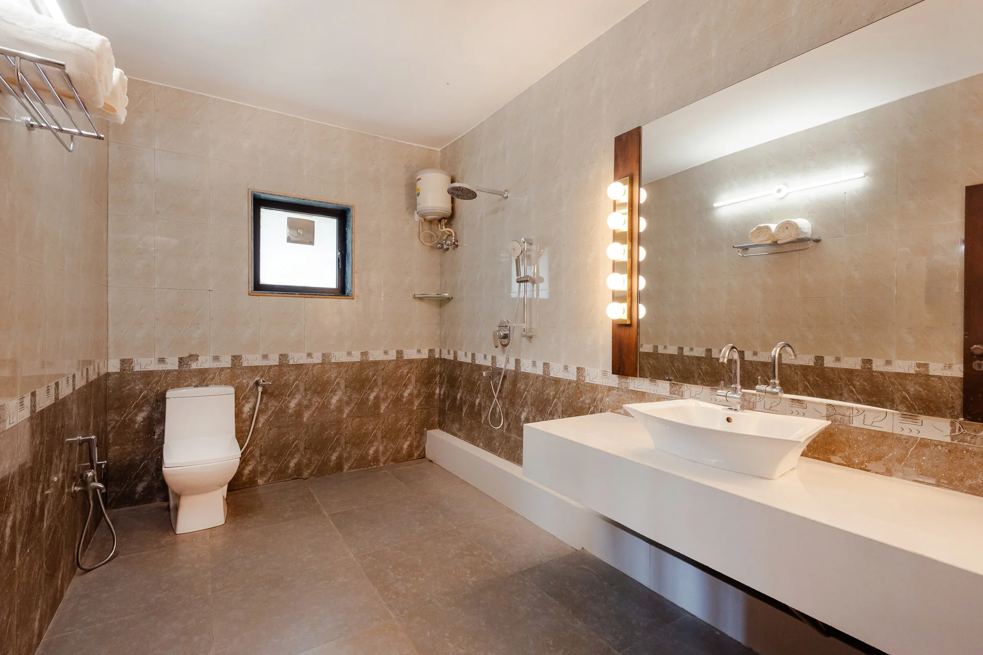 This villa with 4 bedrooms is ideal for tourists and travelers. The VODMH202 Villa is situated in Alibaug. With an outdoor swimming pool, this villa offers accommodations in Alibaug. The property includes access to a terrace, complimentary private parking, and free Wi-Fi. Guests can also enjoy outdoor dining at the villa. The air-conditioned villa comprises 4 distinct bedrooms, 5 bathrooms equipped with free toiletries, a seating area, and a living room. Additionally, the villa is furnished with a flat-screen TV, a washing machine, and 5 bathrooms featuring a shower.