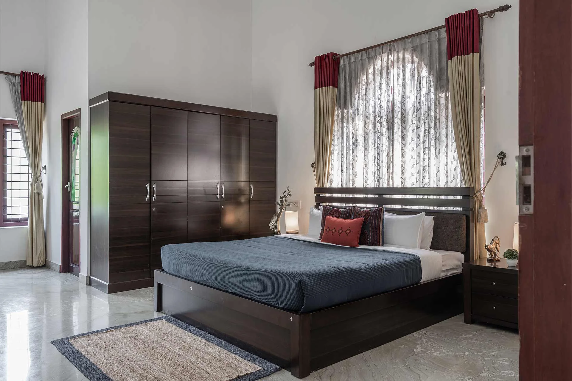 As you step inside, you are greeted by a lampstand that treats one like royalty. The rooms are thoughtfully designed with large windows for sunlights and a beautiful view of the garden. The charm of the VODSI04 Villa is its terrace that showcases a magnificent view of the Periyar river and the garden. The garden of this property is meticulously designed with many tiny flowers and foliage that is complemented by the river.